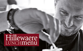 Speciaal voor Hillewaere presenteren Wout & Suzy dagelijks een lunchmenu dat u bij vermelding van “Hillewaere menu” kan gaan proeven. Een 3-gangen lunchmenu met dagverse producten aan 69 euro voor 2 personen*.
