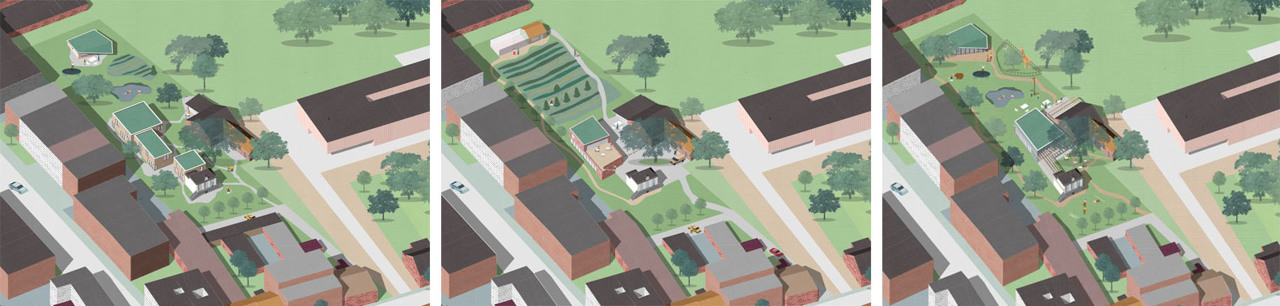 Het paviljoen is beschermd als monument. Maar de hoeve geniet het statuut van bouwkundig erfgoed, waardoor er meer flexibiliteit is. Samen werkten we 3 niet-bindende herbestemmingsscenario’s uit die zowel ruimtelijk, juridisch als financieel zijn onderzocht en die de mogelijkheden van de huidige bebouwing en mogelijke nieuwbouw in kaart brengen.