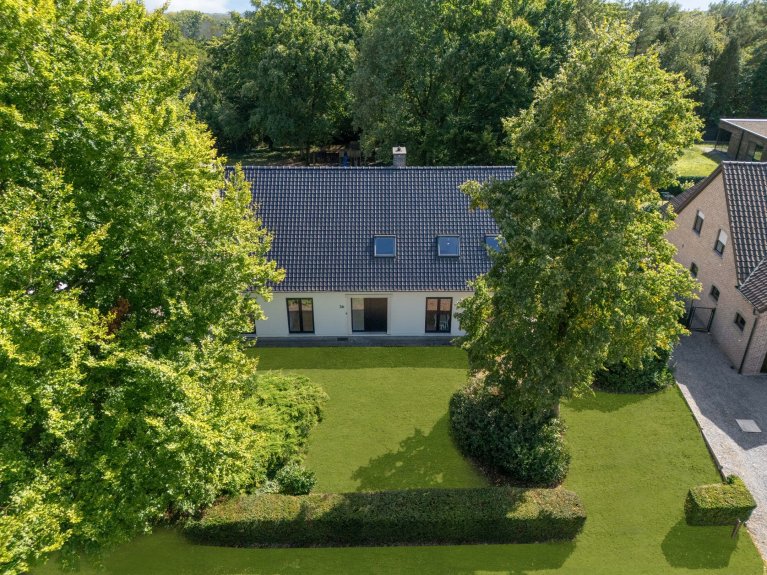 De tuin vormt een absolute troef: een groene oase met volledige privacy en een uniek zicht op eigen bomen. Hier geniet je in alle rust van het buitenleven, ver weg van de drukte maar toch vlakbij alle voorzieningen. Buiten de inpandige garage heeft de woning ook een losstaande garage links op het perceel. Achteraan is er nog een tuinhuis voorzien. De tuin is onderhoudsvriendelijk aangelegd.