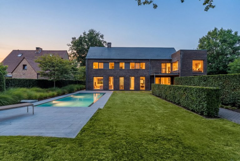 De eerste verdieping ademt dezelfde hoogwaardige afwerking als het gelijkvloers. De nachthal verbindt vier slaapkamers. De master bedroom beschikt over een eigen dressing en een luxueuze ensuite badkamer met bad, inloopdouche en wastafel, en biedt een prachtig uitzicht op de tuin. De drie kinderkamers zijn stuk voor stuk voorzien van ingebouwde kasten en ingebouwde bureaus. Verder vind je hier een tweede douchekamer, een aparte wasplaats en een afzonderlijk toilet.