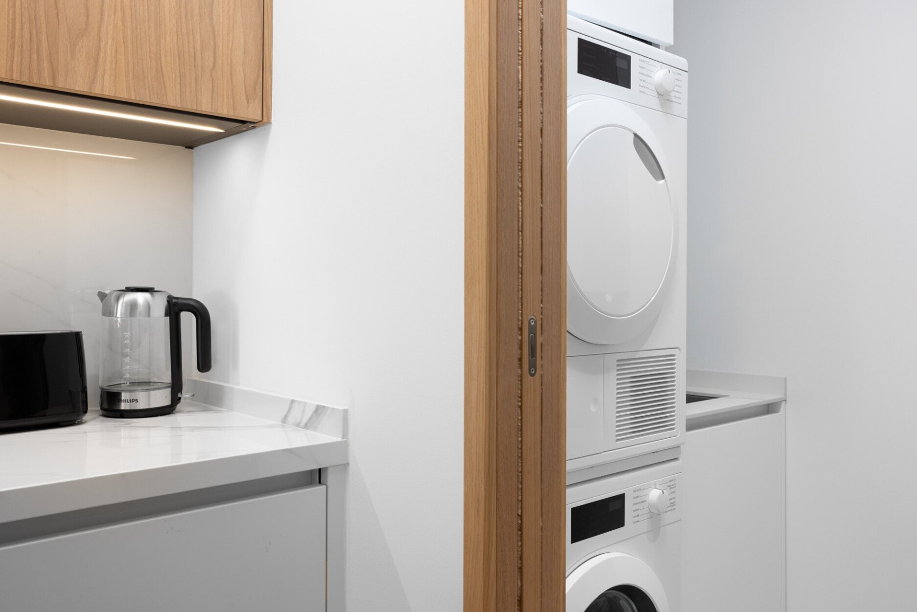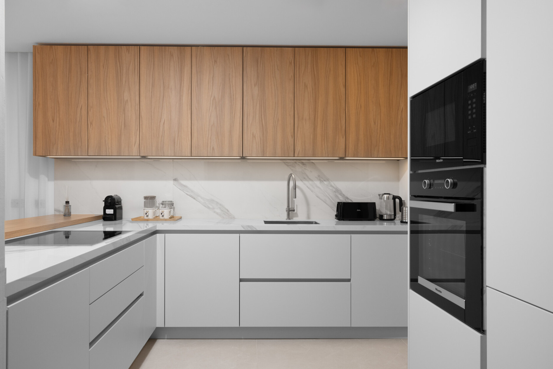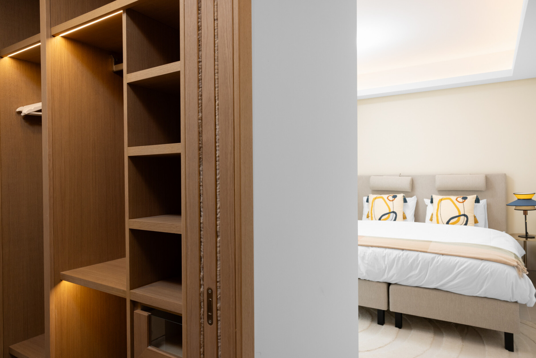 Elk detail van het appartement is zorgvuldig geselecteerd om maximaal comfort te bieden. De moderne keuken is volledig uitgerust met hoogwaardige apparatuur – perfect voor liefhebbers van koken. De woonkamer opent naar het terras en laat binnen- en buitenleven naadloos in elkaar overlopen in een elegante en gastvrije sfeer.