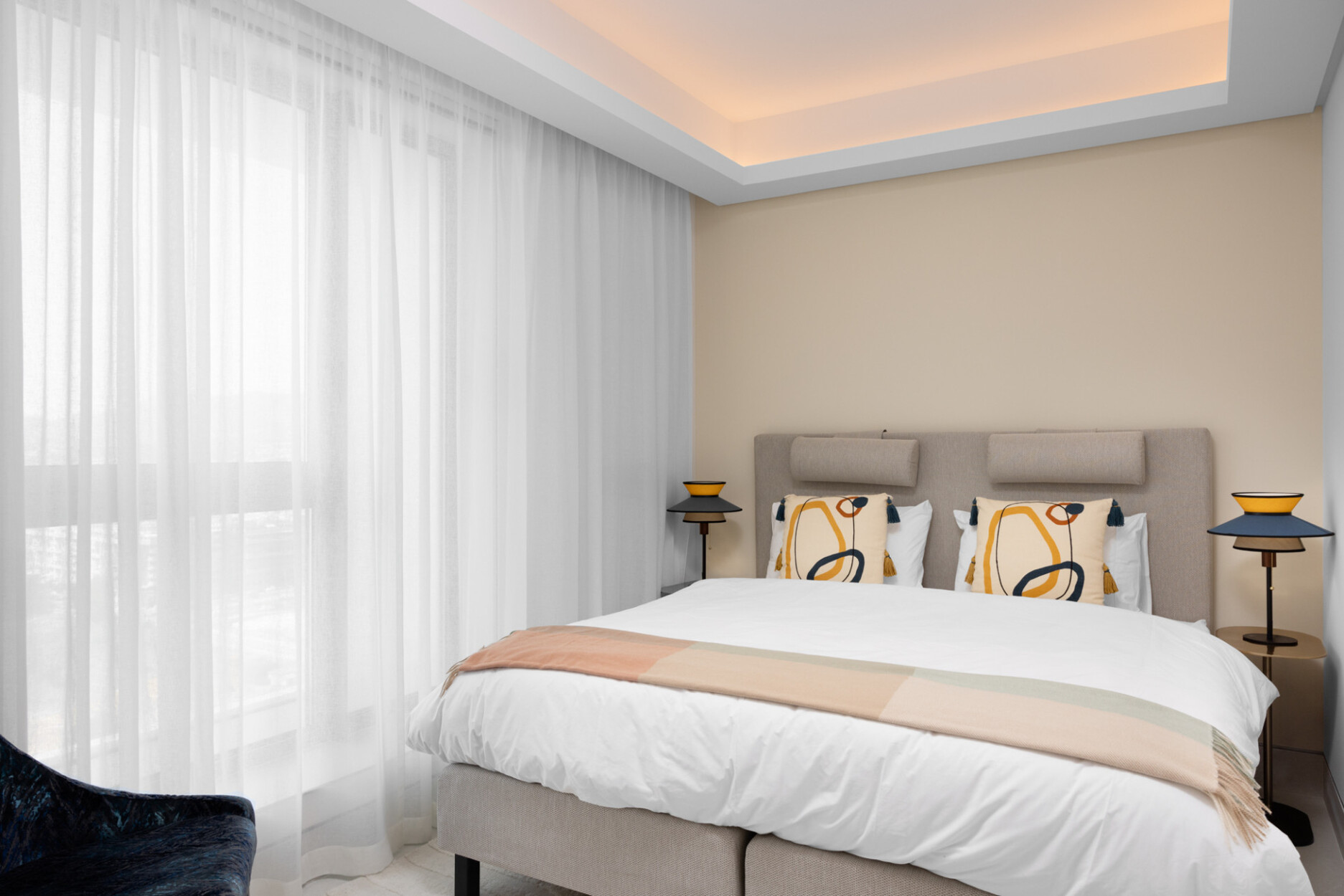 Het gebouw beschikt over luxe faciliteiten zoals 24/7 receptie, een infinity pool op het dak met bar, volledig uitgeruste fitnessruimte, sauna’s, binnenzwembad en een coworkingruimte – ideaal voor wie werk en ontspanning wil combineren. Gezinnen zullen ook genieten van een speciaal ontworpen kinderspeelruimte.