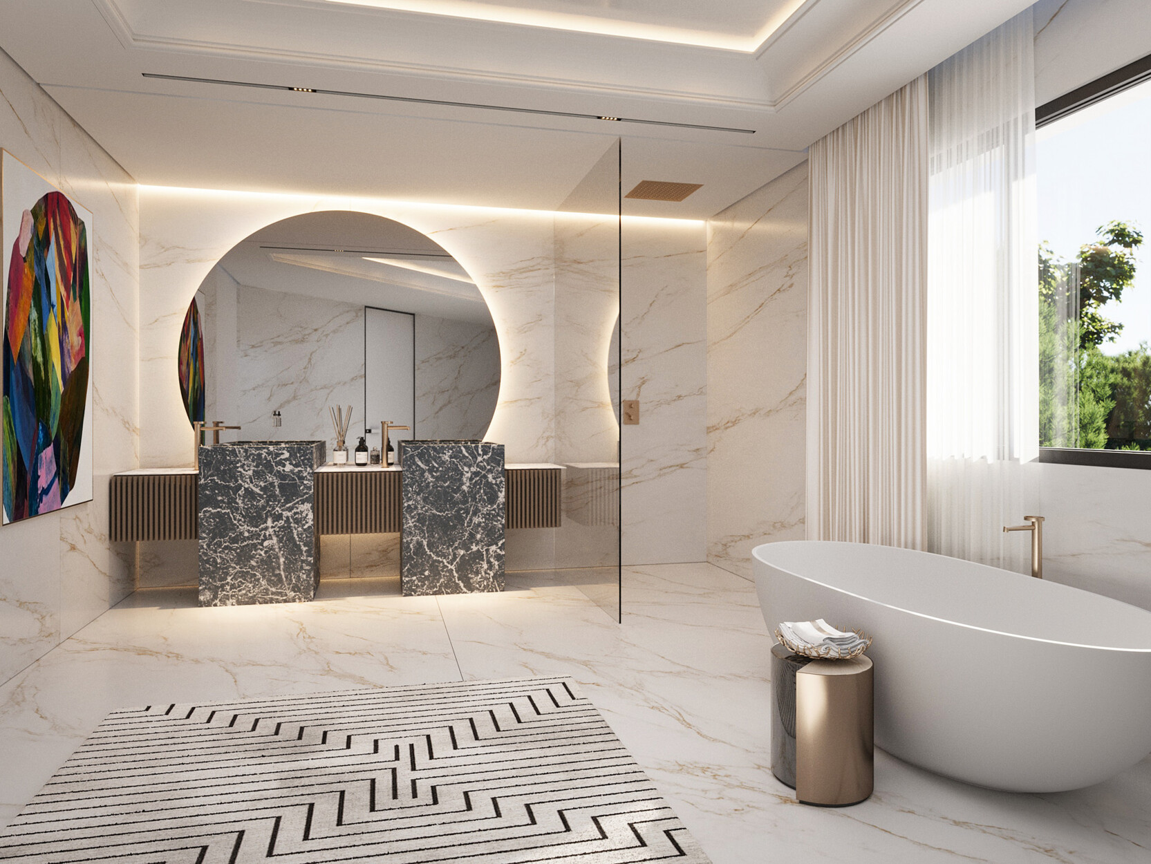 Met 5 ruime slaapkamers en 5 moderne badkamers biedt deze villa een perfecte combinatie van comfort en elegantie. Het geheel heeft een strak eigentijds ontwerp en high-end afwerking. Er is veel natuurlijk licht dat een lichte en luchtige sfeer creëert. Het gemak van de ondergrondse parkeerplaats en berging dragen ongetwijfeld bij aan het comfort.