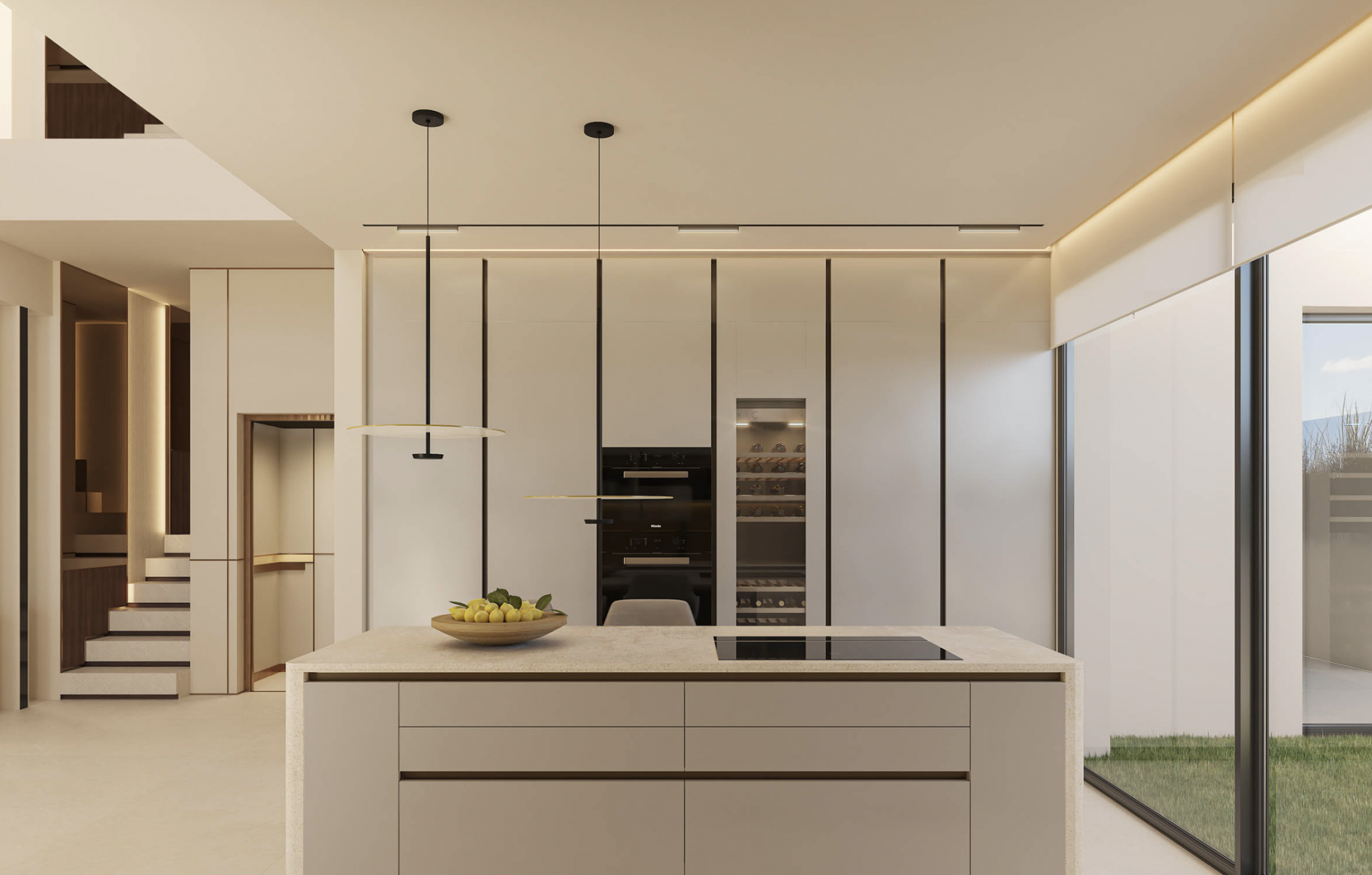 Tot de interieurdetails behoren: de keuken met high-end apparatuur, het warme en koude airconditioningsysteem met kamerbediening en het privézwembad. Een aanpassingspakket is beschikbaar voor de eigenaren met gerenommeerde binnenhuisarchitecten van prestige. Het pand heeft ook een grote kelder en een garage voor minstens drie voertuigen. Het heeft een berging, wasruimte en bijkeuken.