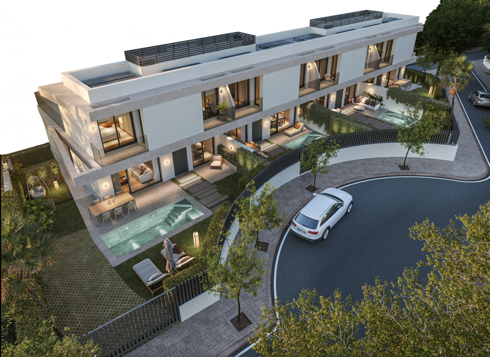 Het exclusieve project bestaat uit vier luxe eengezinswoningen met een verdeling over begane grond, begane grond en kelder. Dit is het enige object in het project met toegang voor auto's vanaf de Paseo de Miramar, die een extra parkeerplaats biedt en directe toegang zonder trappen naar de hoofdverdieping van het object.