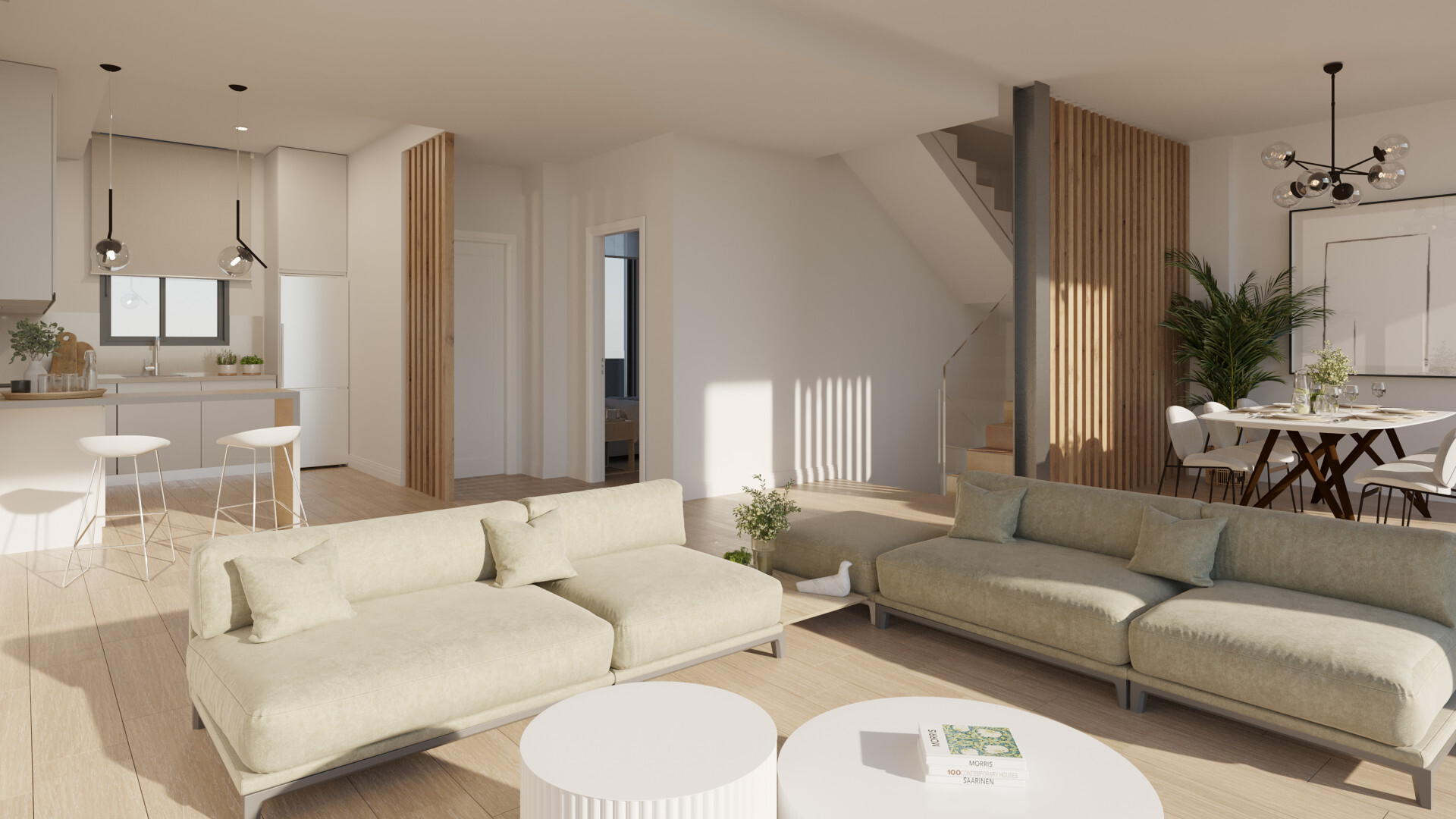 De twee-onder-een-kapwoning is ontworpen om optimaal gebruik te maken van het natuurlijke licht, waardoor een warme en gezellige sfeer wordt gegarandeerd en veel energie wordt bespaard. De oriëntatie van het huis is het oosten, wat zorgt voor zonlicht vanaf de ochtend. Het is verdeeld in drie goed verdeelde niveaus om het comfort en de functionaliteit van de eigenaren te garanderen. Het biedt gezellige slaapkamers met kleedkamer en en-suite badkamer. Het huis beschikt ook over fotovoltaïsche energie en een domoticasysteem, wat energiebesparing en comfort voor de eigenaren garandeert. Het biedt exclusieve afwerkingen zoals Porcelanosa, naast andere gerenommeerde merken, die een geraffineerd en duurzaam ontwerp in de woning garanderen.