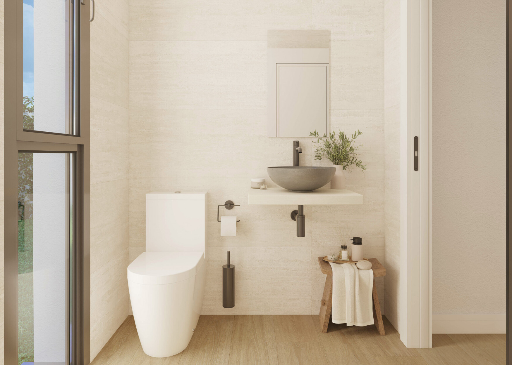 Op de begane grond is de keuken, uitgerust met de nieuwste BOSCH-technologie, een moderne en functionele ruimte. Hij is verbonden met de woon-eetkamer en biedt een grote open en functionele ruimte. Ook op de begane grond is nog een slaapkamer met en-suite badkamer, perfect voor gasten of om aan te passen aan je individuele behoeften. Bovendien is er een gastentoilet ingebouwd voor extra gemak.