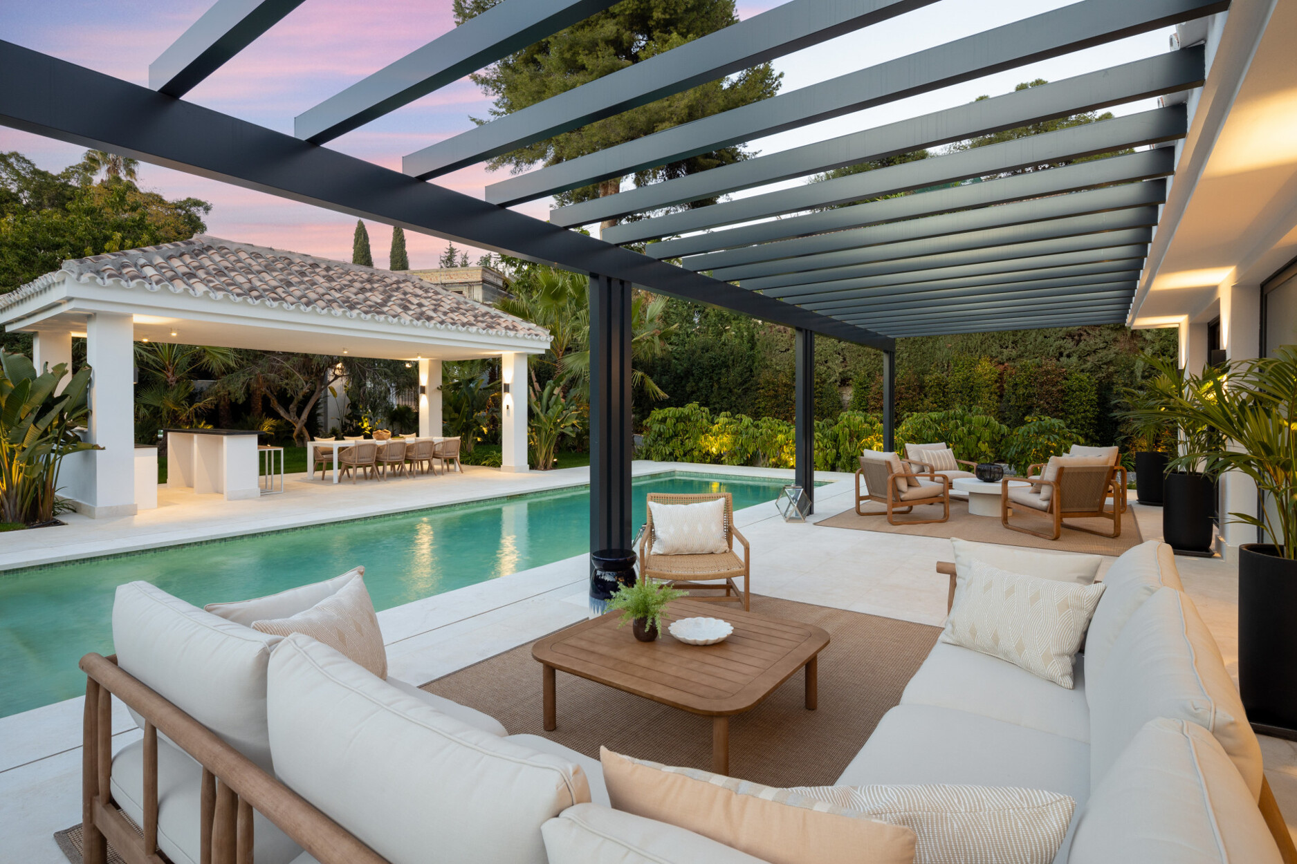 Gelegen op slechts een steenworp afstand van de beroemde Las Brisas golfbaan in Nueva Andalucía, is deze woning een boeiende moderne villa die het toonbeeld is van luxe leven met een vleugje Andalusische charme. De opvallende moderne architectuur is onlangs gebouwd en sluit naadloos aan op de ruime omgeving.