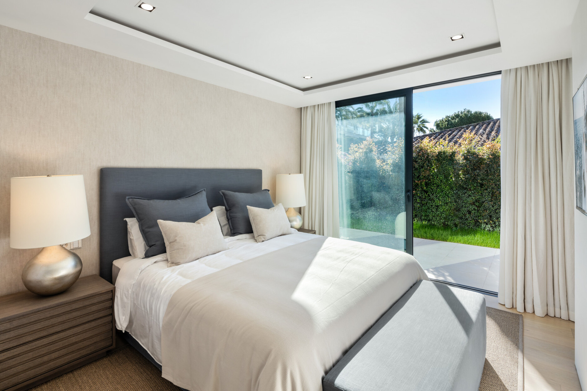 Alle slaapkamers, inclusief de luxe master suite, zijn slim ontworpen voor modern comfort en hebben elk een eigen en-suite badkamer en kleedkamer. De hoofdslaapkamer is echt een heiligdom van weelde.