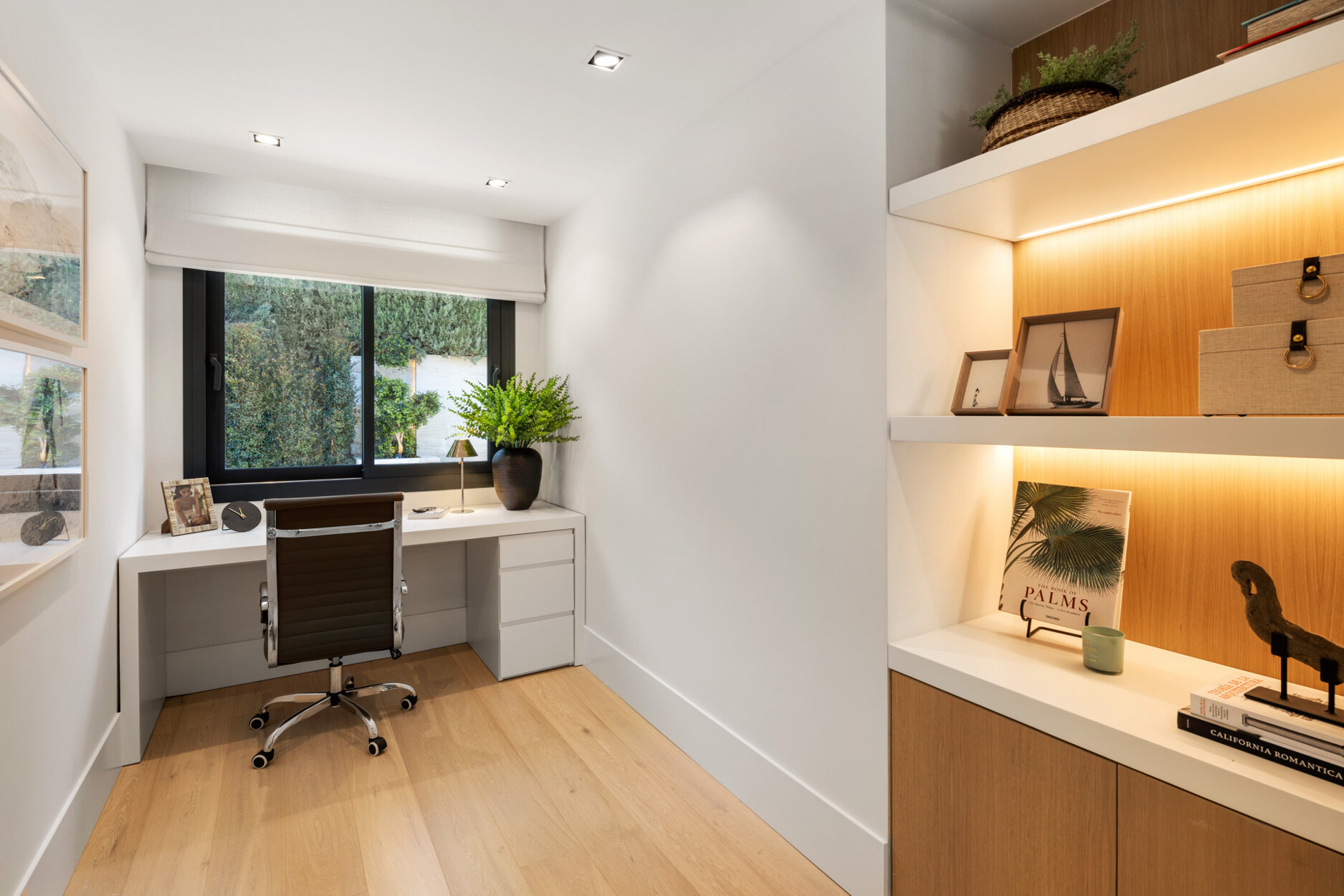 De begane grond heeft een open ontwerp, waarbij elke ruimte naadloos aansluit op de volgende. De op maat gemaakte keuken is een culinair paradijs dat esthetiek en functionaliteit combineert, met ultramoderne apparatuur, elegante marmeren en houten details en een luxe wijnkoelkast.
