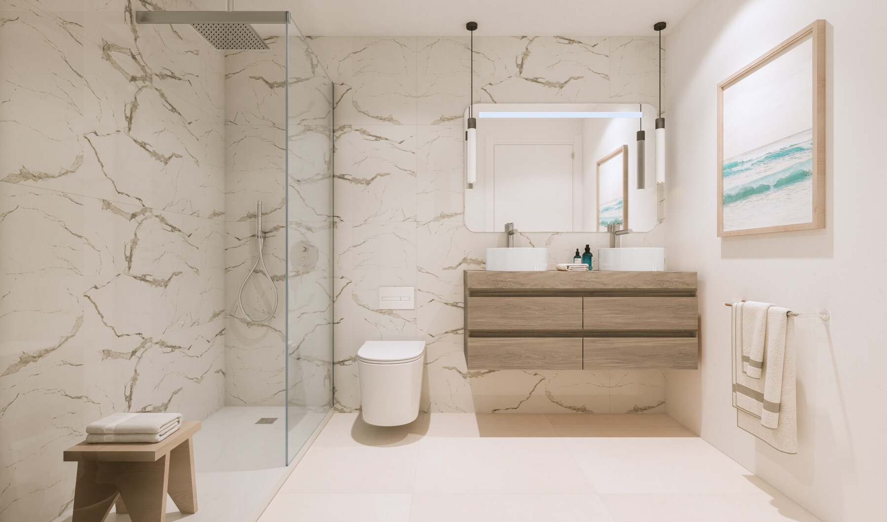 Volledig uitgeruste keuken, video-intercom, airconditioning warm/koud en sanitair warm water via aerothermische technologie, wat het elektriciteitsverbruik met 80% vermindert. Vloerverwarming in de badkamers, bedienbaar via een smartphone, met de optie om vloerverwarming in de hele woning te installeren. Een gastentoilet voor extra comfort. Bovendien zijn twee parkeerplaatsen met oplaadpunten voor elektrische voertuigen en een berging inbegrepen in de prijs.