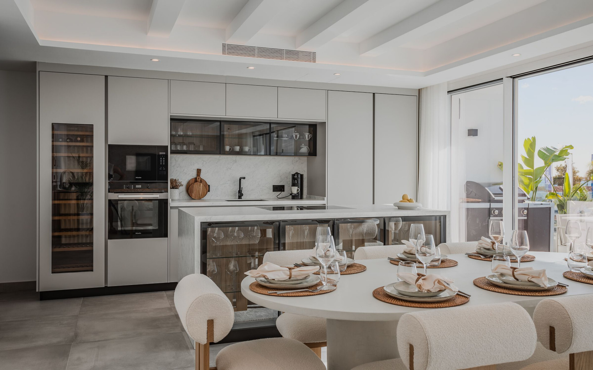 Elke kamer is optimaal benut. In het hele huis vind je charismatische details, zoals een grote woonkamer met crèmekleurige marmeren vloeren en speciale verlichting. De ruime hoofdslaapkamer met kleedkamer biedt prachtig uitzicht op zee. Daarnaast zijn er ook twee tweepersoons slaapkamers met eigen badkamer en nog een gastenslaapkamer met een eigen aparte badkamer. Als klap op de vuurpijl is er een volledig ingerichte keuken met hoogwaardige apparatuur en veel bergruimte.