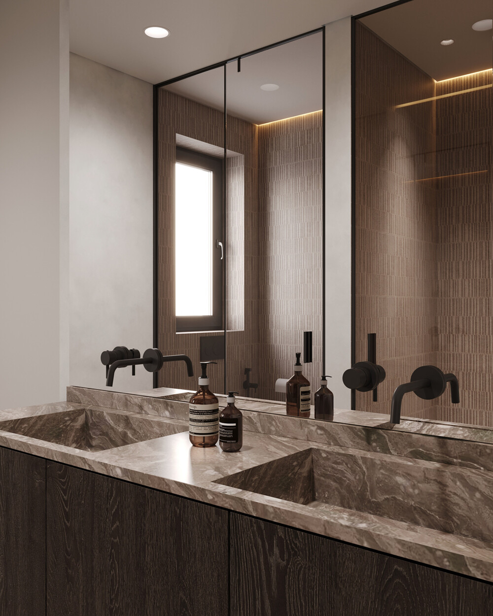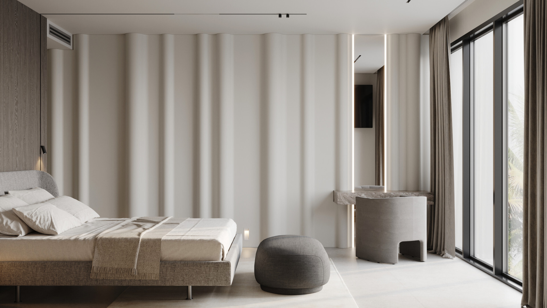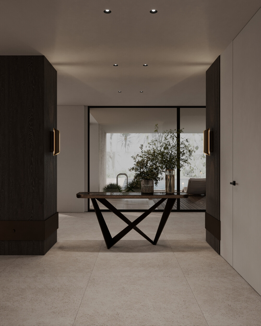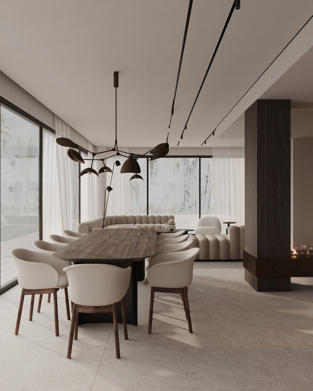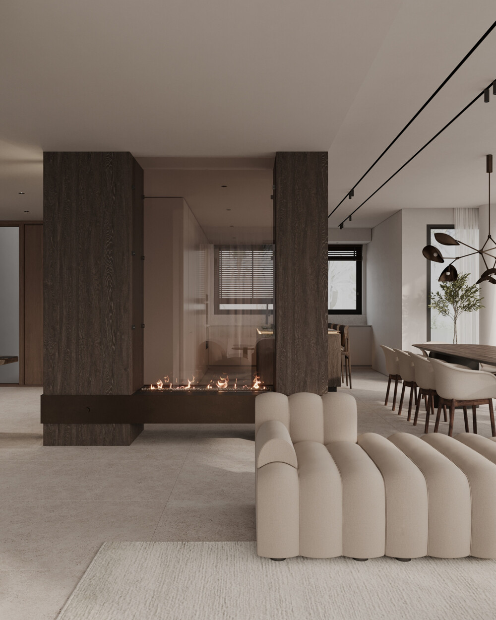 De Scandinavische interieurtrend is zorgvuldig ontworpen en weerspiegelt minimalisme. Vormen en kleuren worden teruggebracht tot hun eenvoudigste vorm om heldere en elegante ruimtes te creëren. Het kleurenpalet van deze woning omvat lichte en zachte natuurlijke tinten, evenals zowel koele als warme grijstinten, verzacht door nude- en houttinten.
