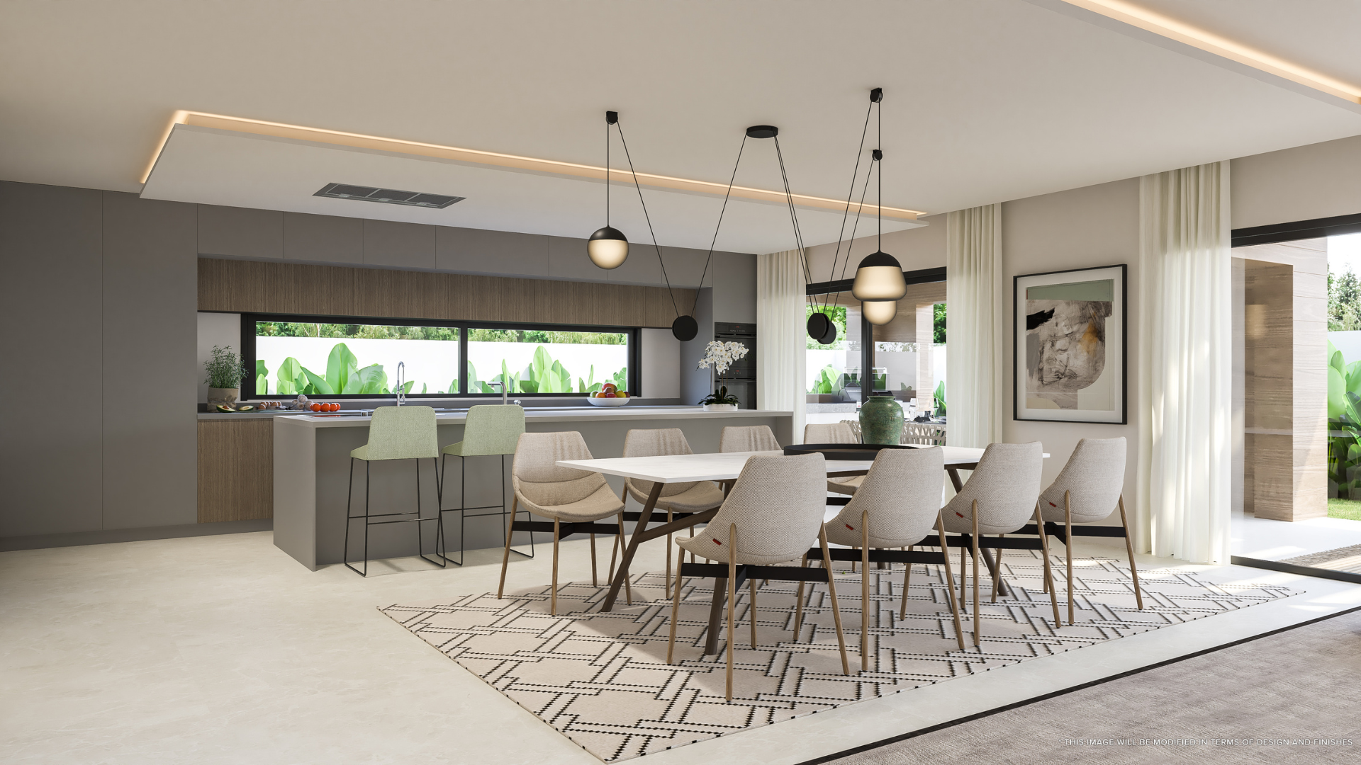 Het gebouw heeft een origineel en eigentijds ontwerp. Het heeft een privézwembad en een buitendouche. De buitenruimte omvat ook een overdekte eethoek en een ander terras met banken en chill-out. Schaduwrijke en zonnige gebieden zijn zorgvuldig gepland, allemaal omringd door een grote tuin. Het pand wordt omringd door weelderig aangelegde tuinen en de kamers hebben grote ramen die natuurlijk licht binnenlaten, waardoor de schoonheid van de tuin wordt geïntegreerd met het interieur van het huis.