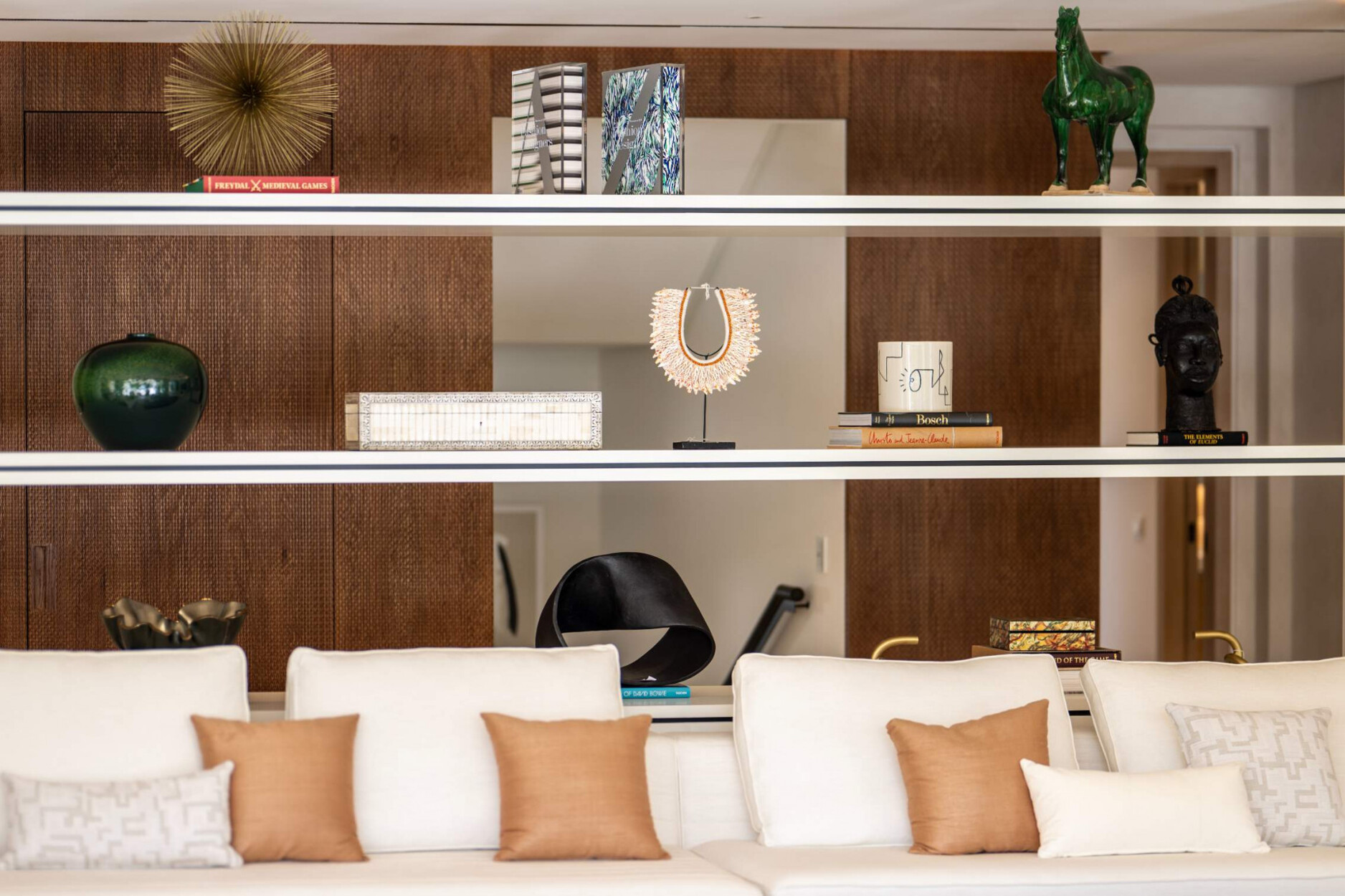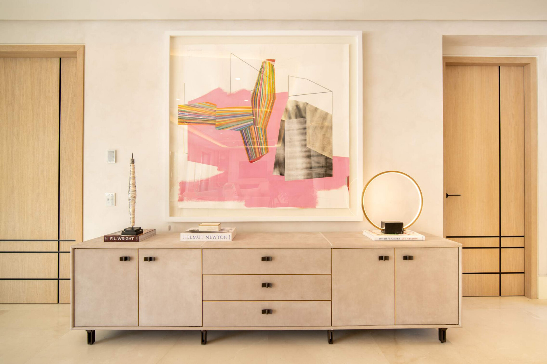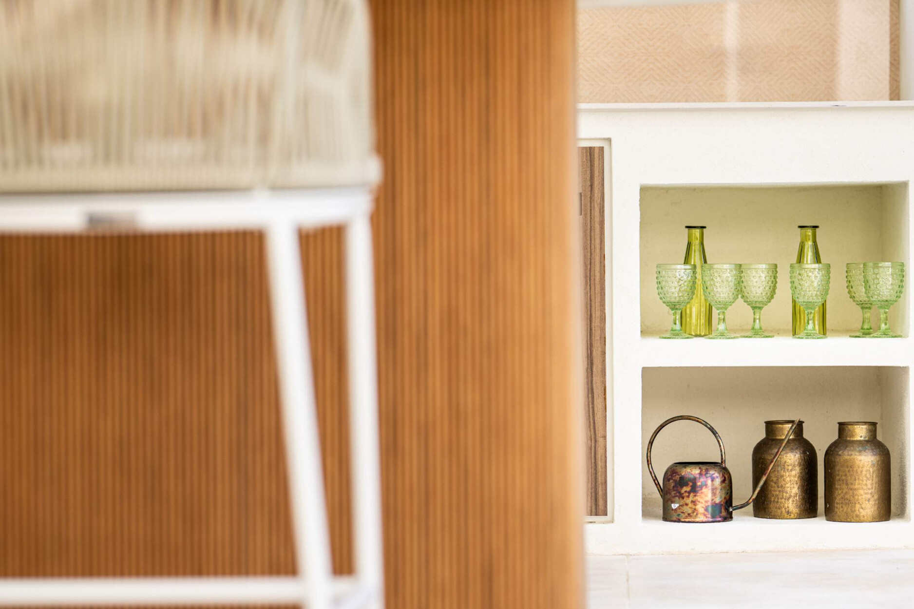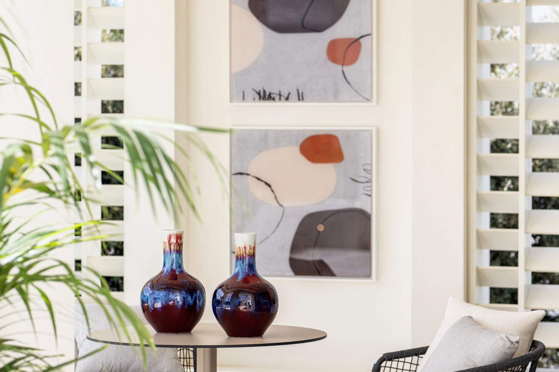 Dankzij de strategische ligging op het zuidoosten baadt het pand het grootste deel van de dag in natuurlijk licht. Het interieur, ontworpen door Pedro Peña, is net zo indrukwekkend als het exterieur, met een verfijnde selectie meubels en accessoires die esthetiek en comfort combineren. De eetkamer heeft directe toegang tot het terras en de keuken, waardoor het de ideale plek is om samen te komen met de familie en te genieten van een maaltijd. De op maat gemaakte keuken straalt elegantie en functionaliteit uit. Het eiland en de kasten zijn versierd met indrukwekkende houten details en onderscheiden zich door de ruime opbergruimte.