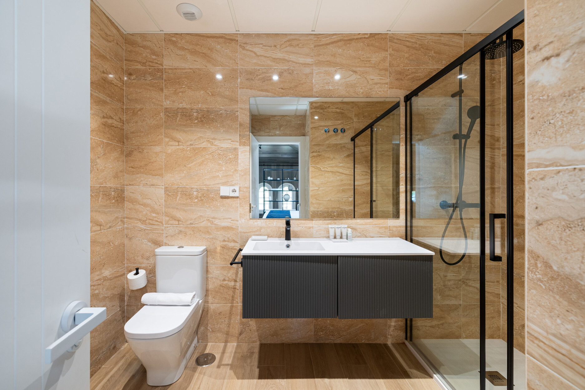 Het appartement is volledig nieuw ontworpen met de nieuwste materialen en technologieën. Het beschikt over een elektrische boiler voor de productie van warm water. Koeling en verwarming worden geregeld via een warmtepomp met leidingen in de woonkamer en slaapkamers. De vloeren zijn van porseleinen tegels die hout imiteren, waardoor het hele appartement een uniforme uitstraling heeft, en de toegangspaden en trap zijn voorzien van natuursteen.