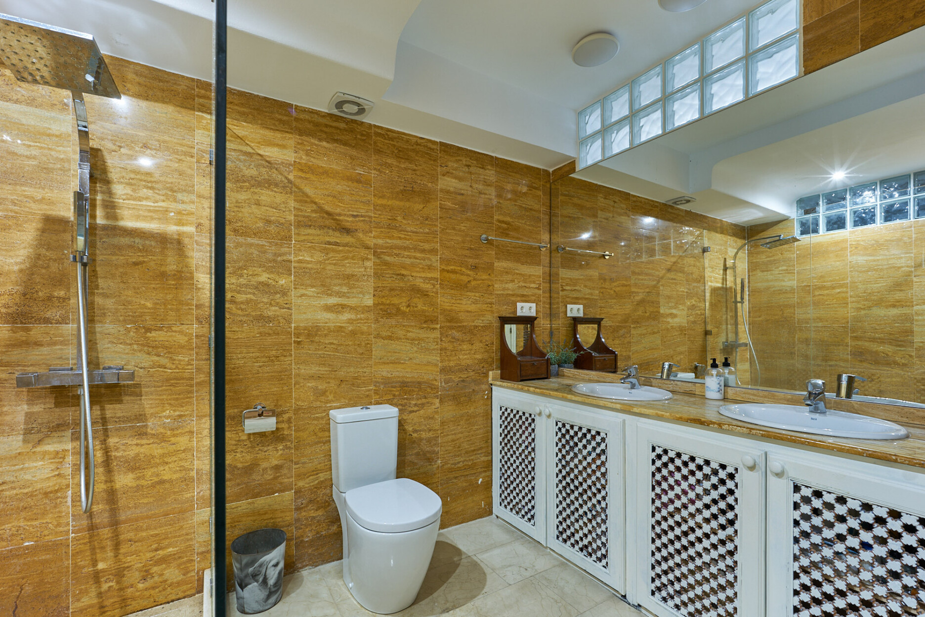 De benedenverdieping biedt een breed scala aan mogelijkheden en geeft je daarom de mogelijkheid om er een grote meerwaarde aan te geven. Met nog eens 3 slaapkamers en twee extra badkamers kun je het perfect aanpassen aan je smaak en behoeften door een extra slaapkamer te creëren met een grote kleedkamer, een kantoor, een bioscoopzaal of een ontspanningsruimte met bar, biljartkamer en/of wijnkelder. Er is ook de mogelijkheid om de aangrenzende halfvrijstaande woning Ref 2242 van dezelfde eigenaar en met vergelijkbare kenmerken te verwerven om deze twee halfvrijstaande woningen samen te voegen en zo een prachtige grote vrijstaande villa te creëren in de meest exclusieve buurt van Marbella met de zee en alle voorzieningen op loopafstand.