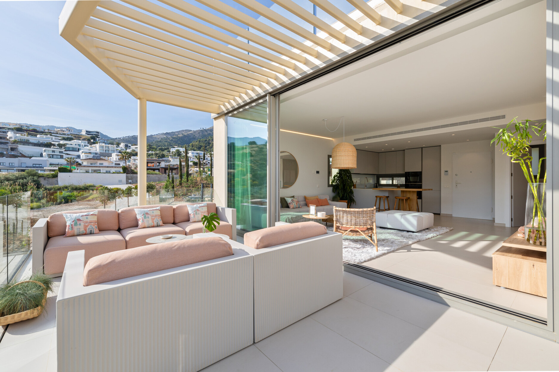 Dit exclusieve penthouse biedt een levensstijl vol comfort en voorzieningen, met een indeling die ruimte en natuurlijk licht maximaliseert. Het moderne en elegante ontwerp van het gebouw gaat harmonieus samen met de omringende natuur, in de hoogste wijk van El Higueron, en creëert een ideale omgeving om van te genieten. Met drie slaapkamers en twee badkamers, heeft de hoofdslaapkamer een en-suite badkamer en een grote kleedkamer, plus een extra gastentoilet. De wasruimte bevindt zich naast de ruime woonkamer/keuken, die wordt gepresenteerd in een open ruimte, perfect voor een warm en gezellig thuis.