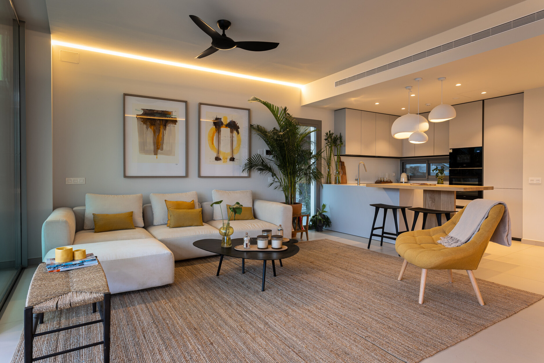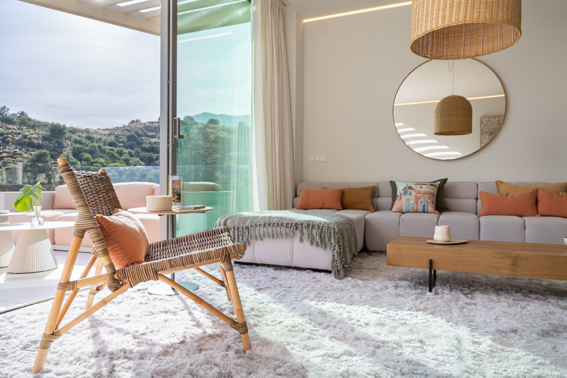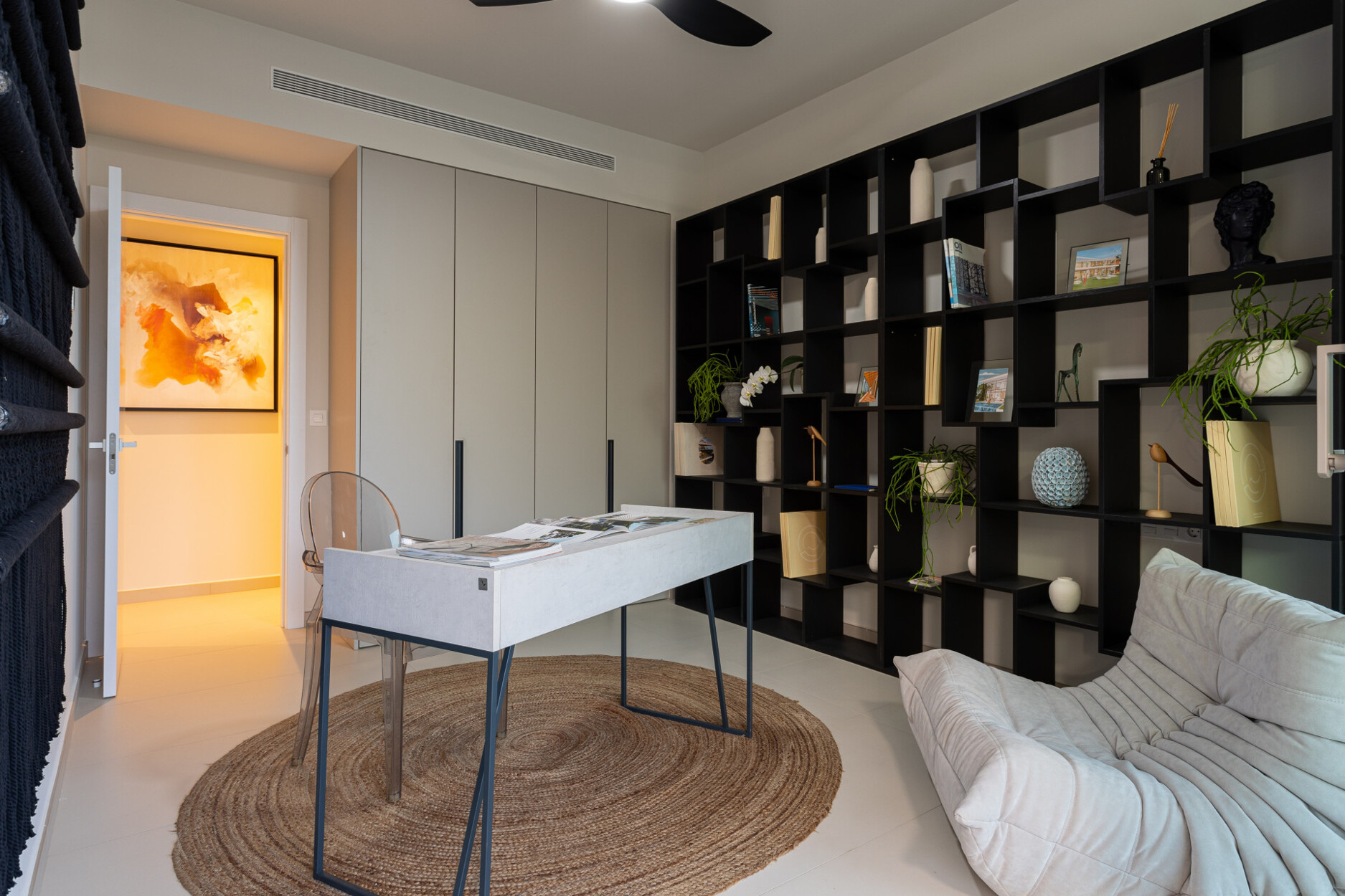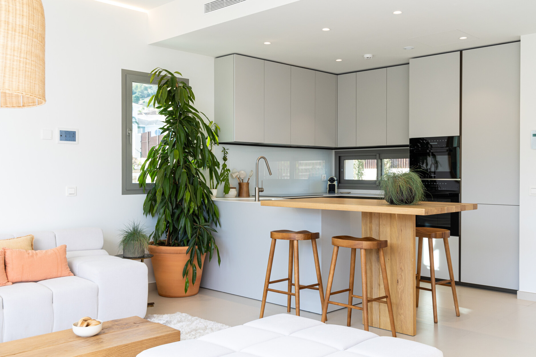 De interieurs van het penthouse onderscheiden zich door hun uitzonderlijke kwaliteit, met Saloni-keramische vloeren en een keuken uitgerust met Bosch- en AEG-apparatuur. Vloerverwarming zorgt het hele jaar door voor optimaal comfort. Domotica biedt gemak en controle, terwijl de badkamers luxe afwerkingen hebben van merken zoals Kaldewei, Duravit en Hansgrohe. Elke kamer heeft directe toegang tot het enorme terras, waardoor natuurlijk licht de ruimte kan binnenstromen en de neutrale en warme tinten kan accentueren die een gezellige en elegante sfeer creëren.