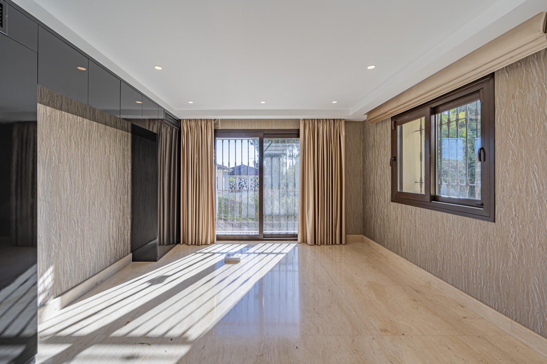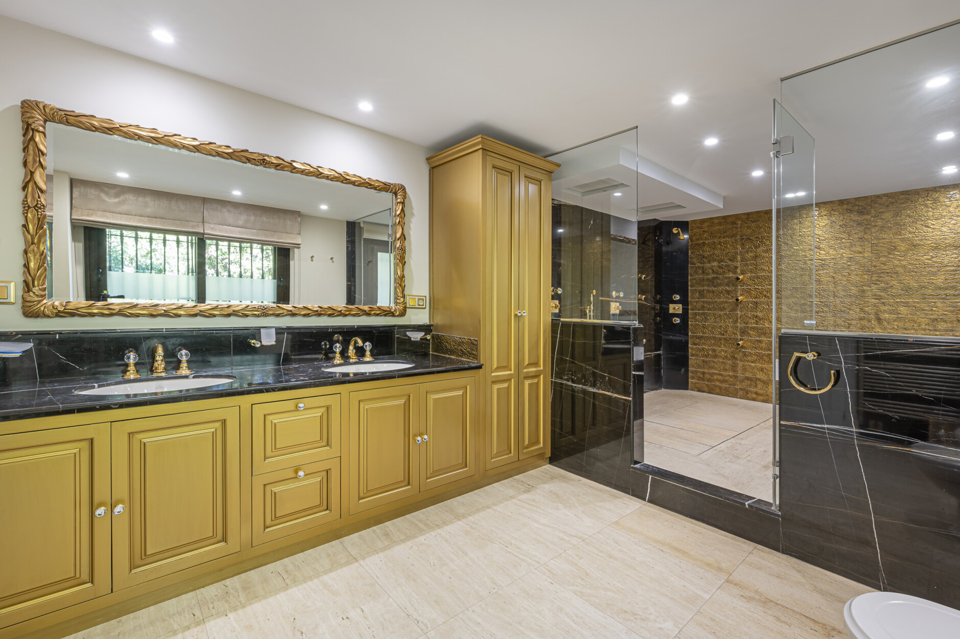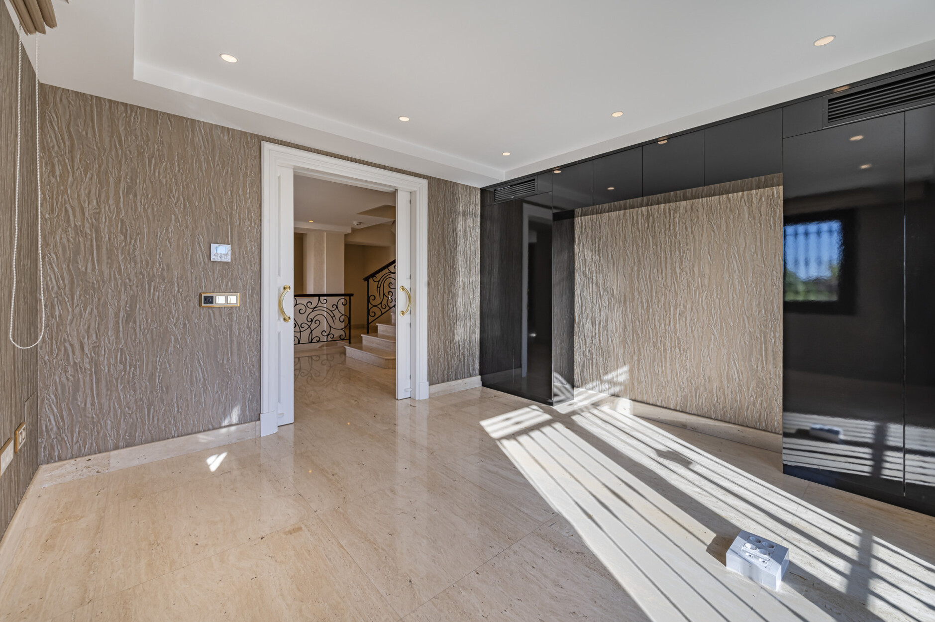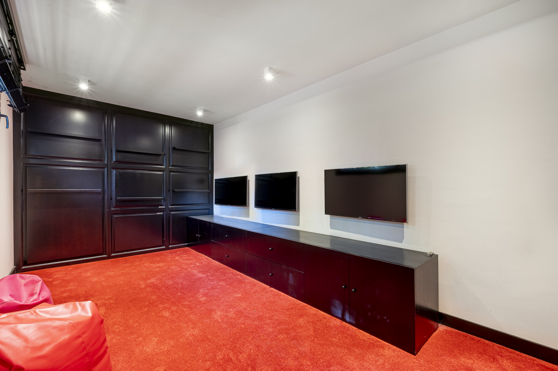 Veiligheid, van het grootste belang voor een villa van deze aard, wordt versterkt door een ultramodern alarmsysteem, naast de gemoedsrust die het wonen in een omheinde gemeenschap met zich meebrengt. Entertainment staat centraal, met een bioscoopzaal en een speelkamer, inclusief een pooltafel, die beide heerlijke ruimtes bieden voor ontspanning en sociale bijeenkomsten. De villa integreert ook naadloos moderne gemakken, zoals high-speed Wi-Fi internet en een handige wasruimte, wat een extra niveau van comfort en functionaliteit toevoegt aan het dagelijks leven van de bewoners.