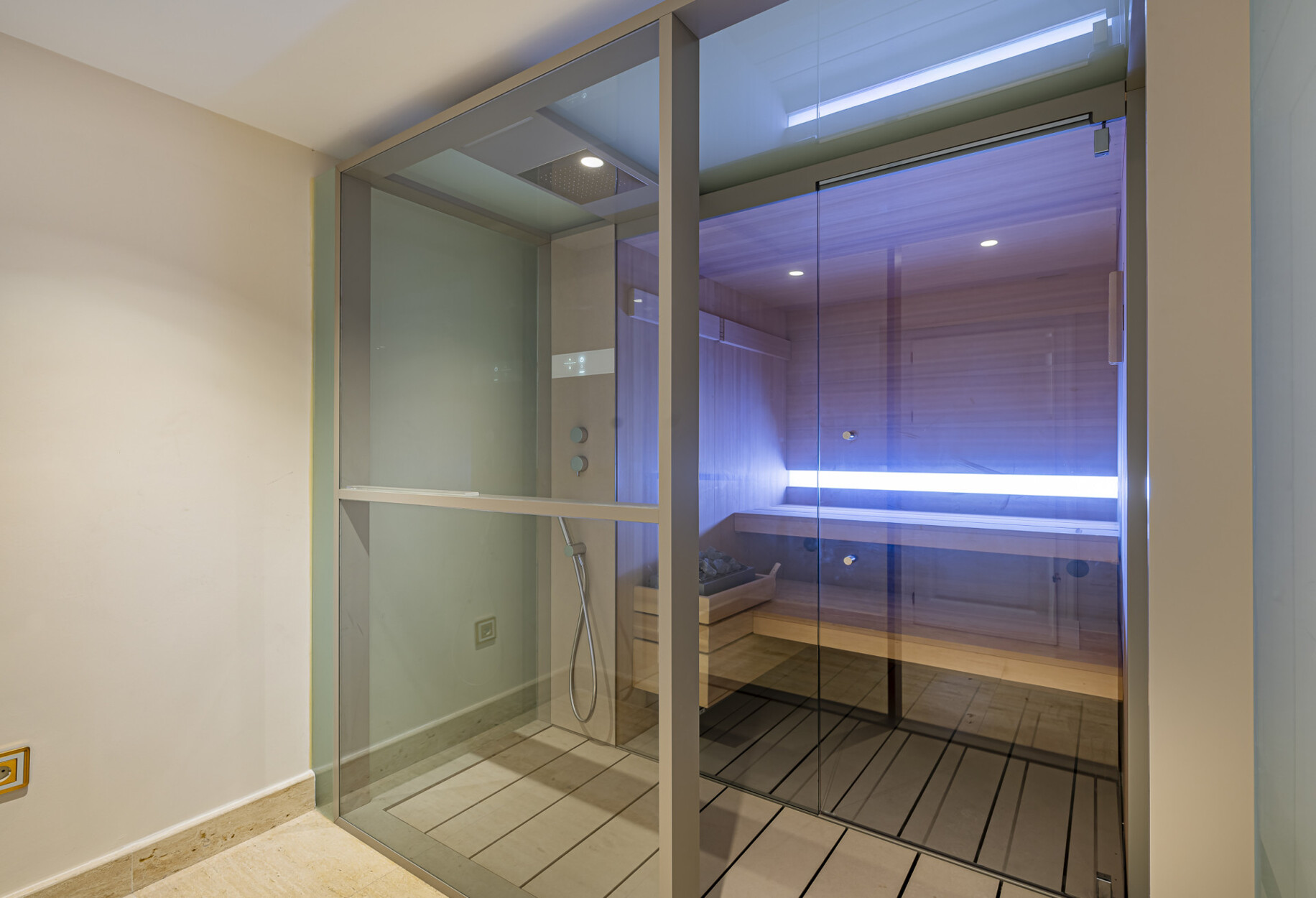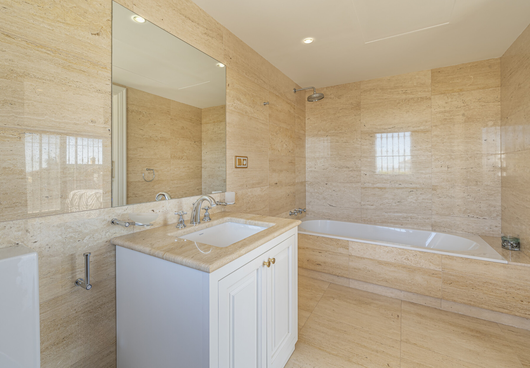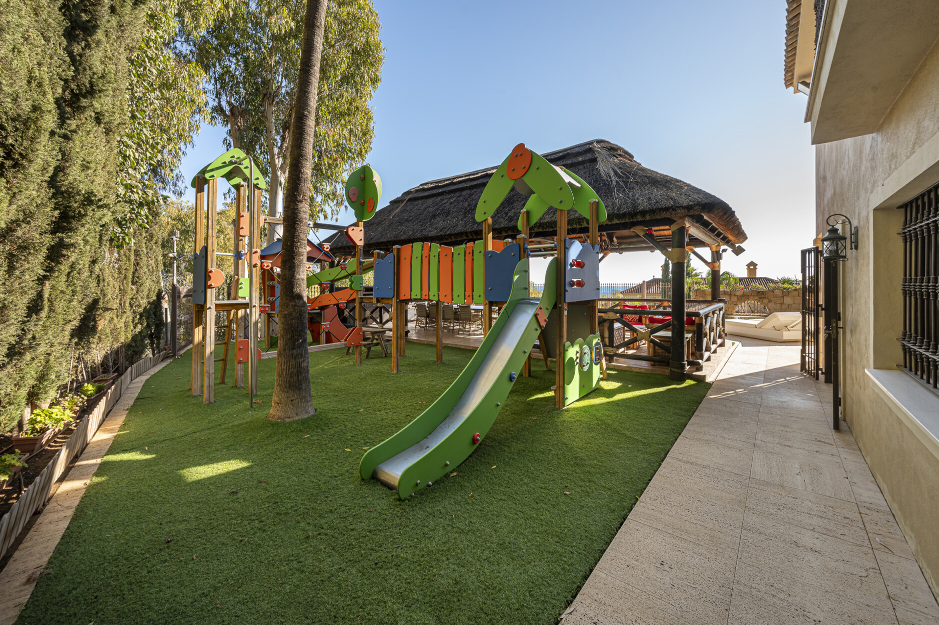 Vanaf het privéterras worden bezoekers begroet door een verwarmd zwembad, dat de perfecte omgeving biedt om te genieten van een prachtig panoramisch uitzicht op de Middellandse Zee en de omliggende weelderige tuinen. De ruime terrassen bieden zowel overdekte als openluchtopties, ideaal voor het buitenleven, ontworpen om aan de behoeften van alle gezinsleden te voldoen. De jongere leden van de familie kunnen genieten van een speciaal ontworpen entertainmentpark, dat perfect is voor verjaardagsfeestjes en leuke momenten.