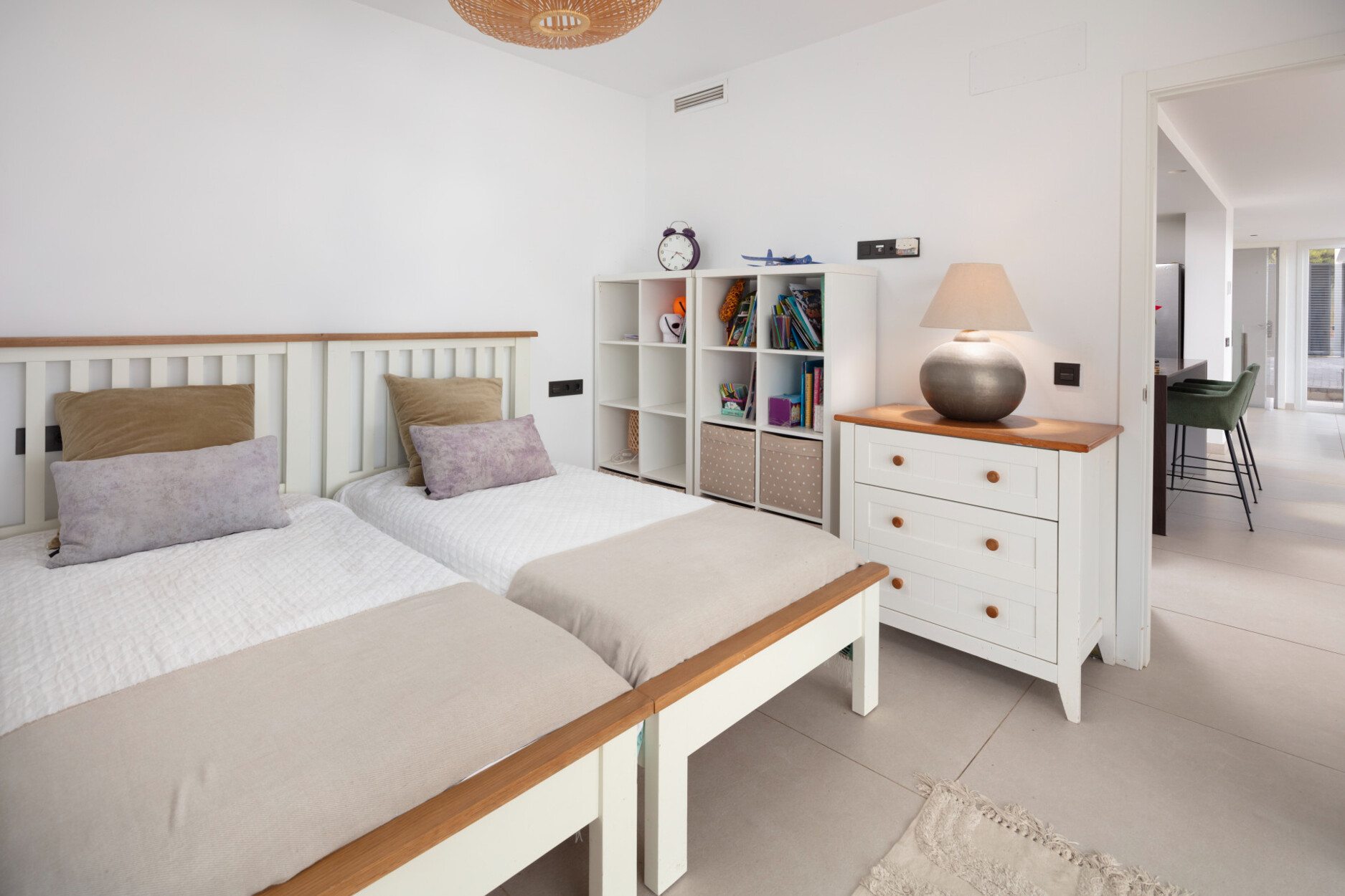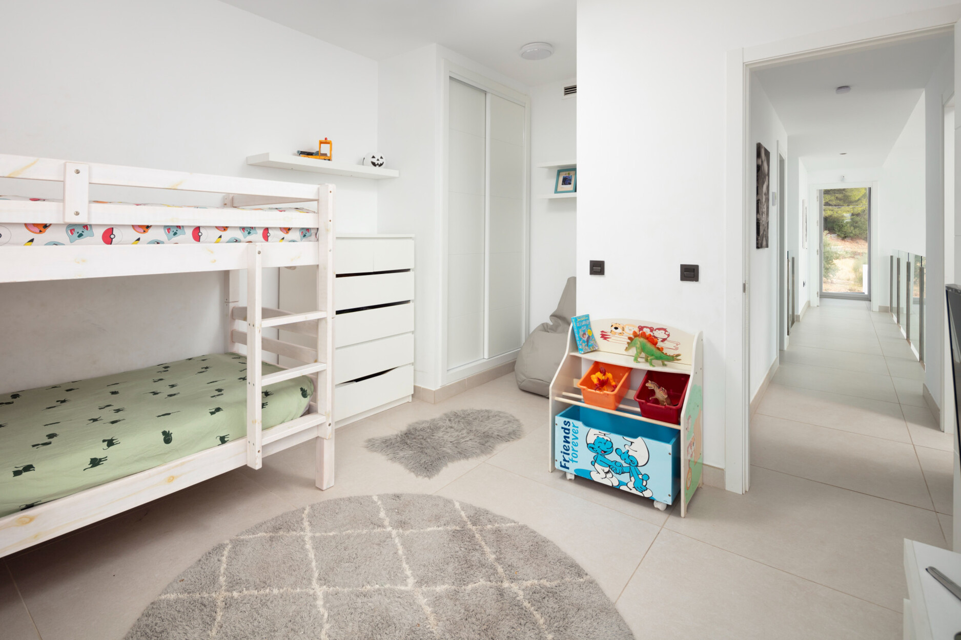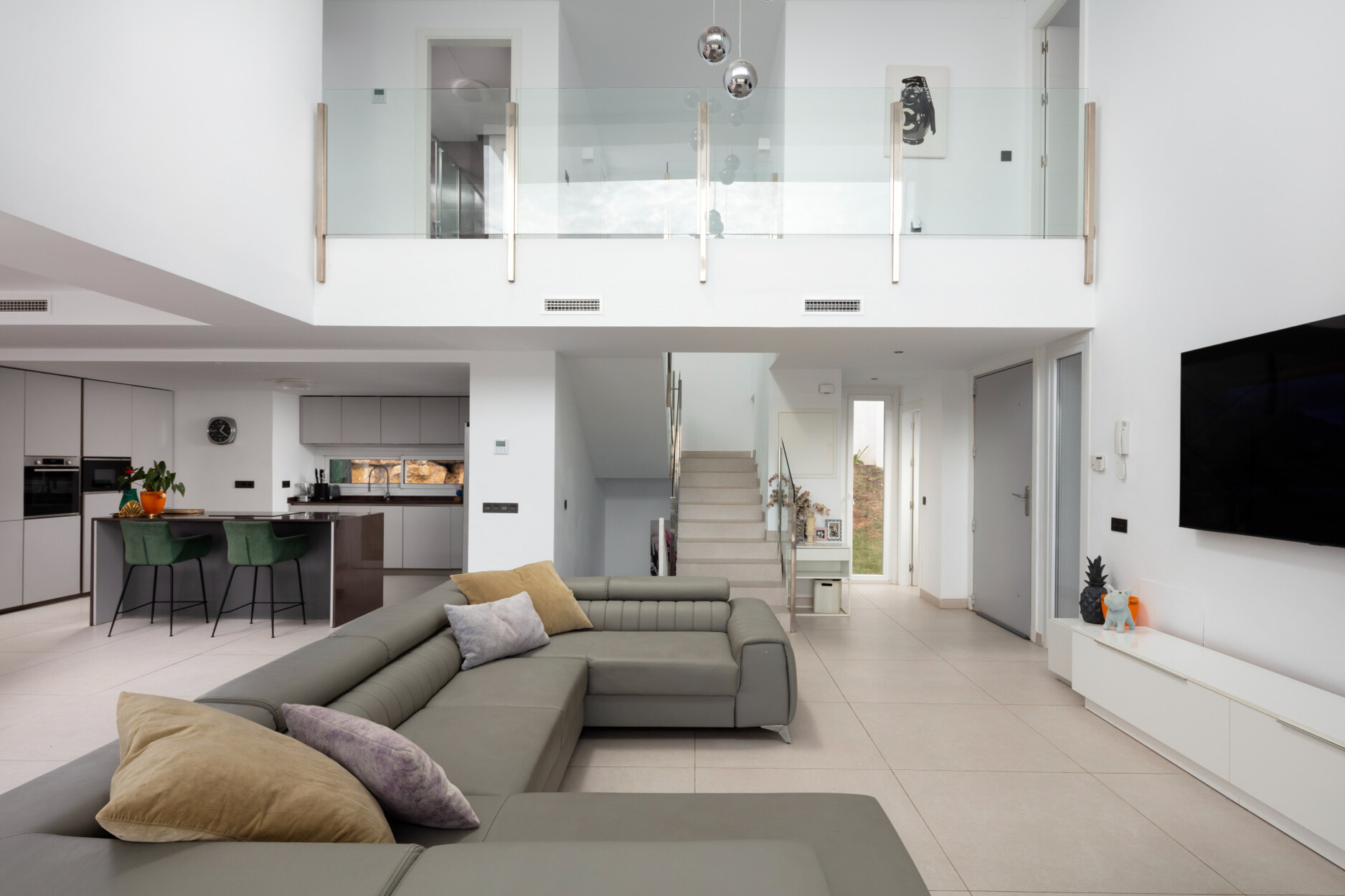 Het interieur van de villa combineert eigentijdse elegantie met een warme, uitnodigende sfeer, waardoor je wordt aangemoedigd om van elk moment te genieten. De hoge plafonds en grote ramen in de woonkamer bieden een geweldig gevoel van ruimte en helderheid. De open, volledig uitgeruste keuken maakt van elke maaltijd een speciale ervaring om te delen. Op dezelfde verdieping vind je een royaal slaapkamer met directe toegang tot de tuin en het zwembad, ideaal voor gebruik als thuiskantoor of gastenverblijf. De ruime kelder biedt comfort en voldoende ruimte voor je meest waardevolle bezittingen. Op de bovenste verdieping beschikt deze woning over drie grote slaapkamers en twee privéterrassen met uitzicht op zee en bergen die onvergetelijke zonsondergangen bieden, waardoor de perfecte setting voor ontspanning ontstaat. Bovendien zorgt het gescheiden luchtventilatiesysteem voor absolute comfort het hele jaar door.