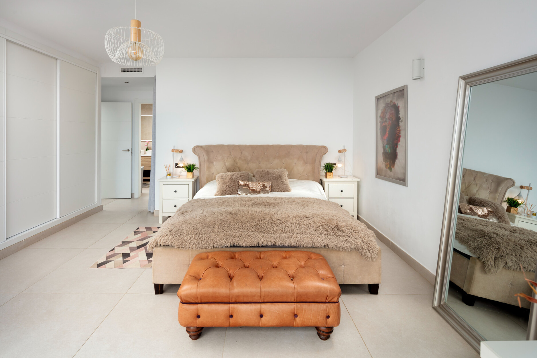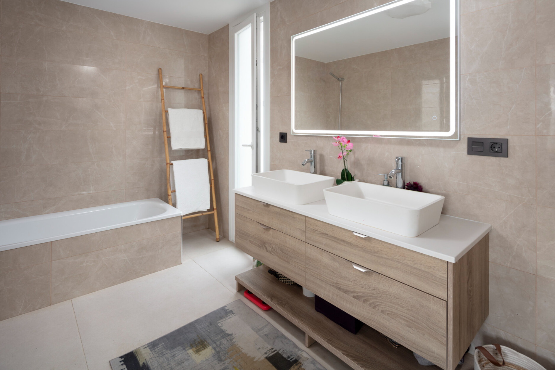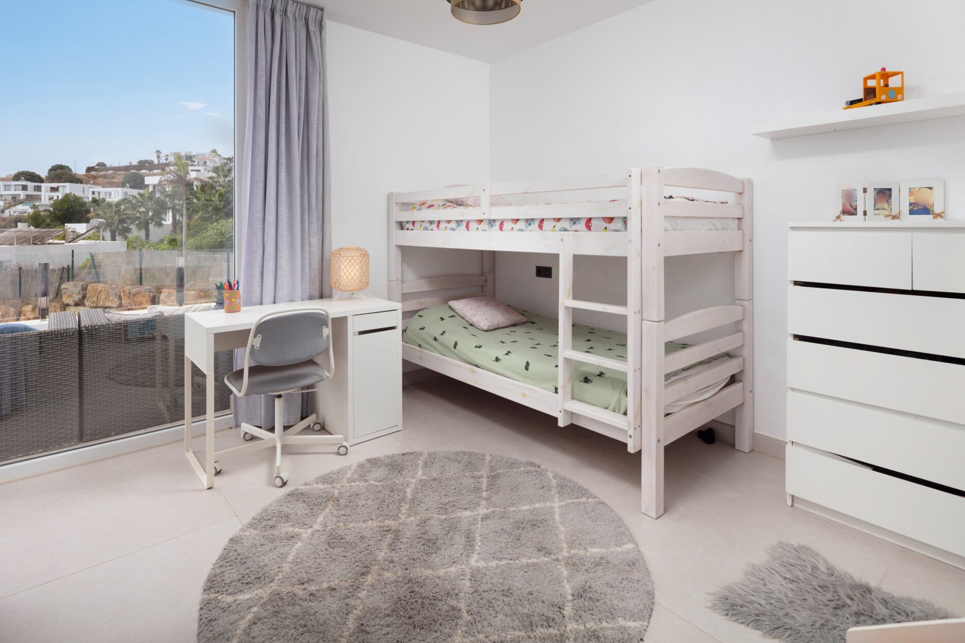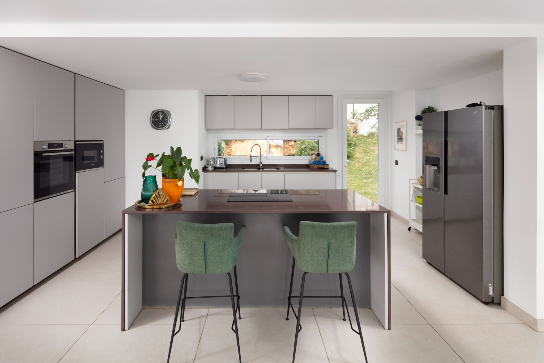Het interieur van de villa combineert eigentijdse elegantie met een warme, uitnodigende sfeer, waardoor je wordt aangemoedigd om van elk moment te genieten. De hoge plafonds en grote ramen in de woonkamer bieden een geweldig gevoel van ruimte en helderheid. De open, volledig uitgeruste keuken maakt van elke maaltijd een speciale ervaring om te delen. Op dezelfde verdieping vind je een royaal slaapkamer met directe toegang tot de tuin en het zwembad, ideaal voor gebruik als thuiskantoor of gastenverblijf. De ruime kelder biedt comfort en voldoende ruimte voor je meest waardevolle bezittingen. Op de bovenste verdieping beschikt deze woning over drie grote slaapkamers en twee privéterrassen met uitzicht op zee en bergen die onvergetelijke zonsondergangen bieden, waardoor de perfecte setting voor ontspanning ontstaat. Bovendien zorgt het gescheiden luchtventilatiesysteem voor absolute comfort het hele jaar door.