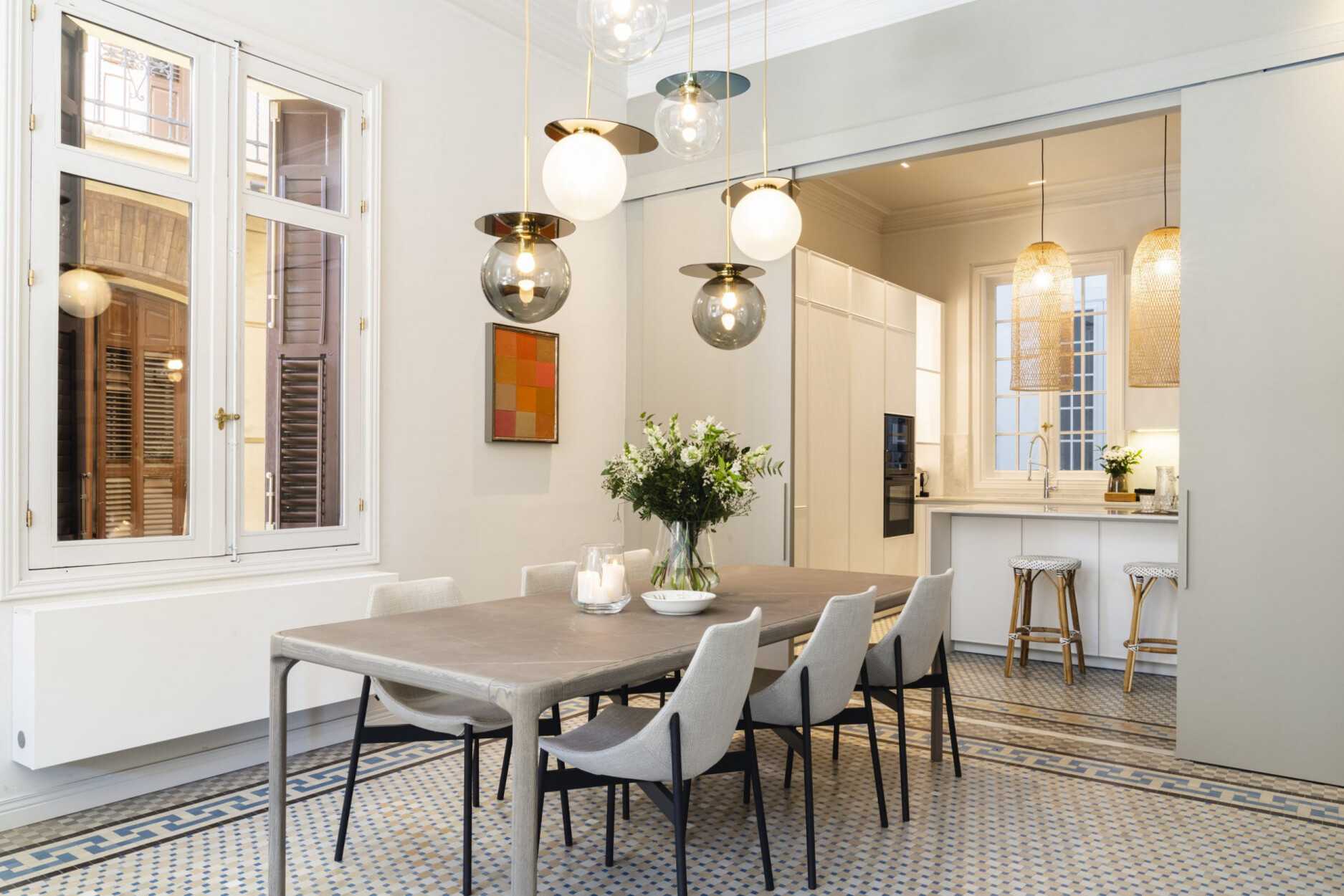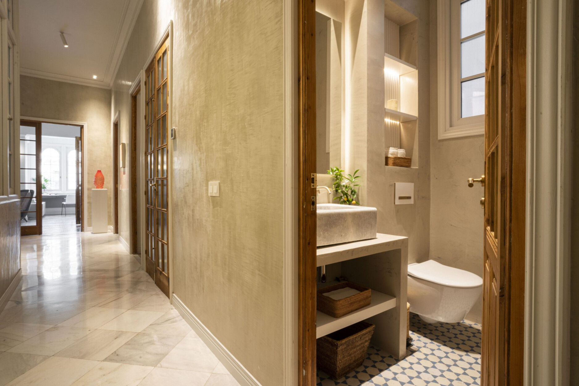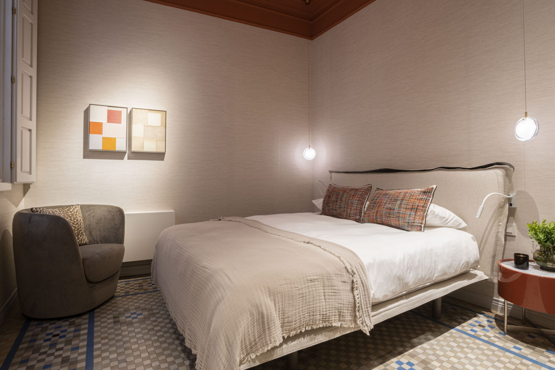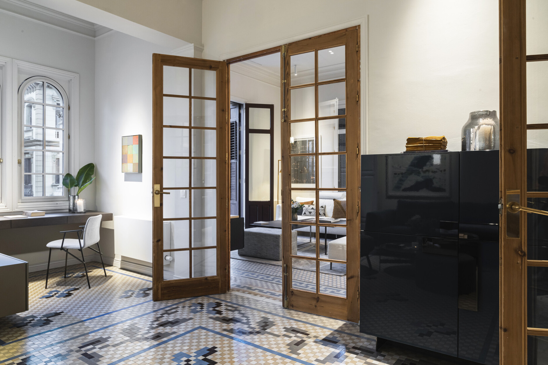 Het pand, volledig ingericht met prestigieuze merken, valt ook op door het gebruik van Nolla mozaïek, een uitzonderlijke vloertegel die lijkt op een hydraulische vloer. Antonio Gaudí bewonderde deze stukken, zichtbaar in Casa Batlló en andere emblematische gebouwen in Barcelona, evenals in het Palacio de Villagonzalo en het Palacio de Fernán Núñez in Madrid.