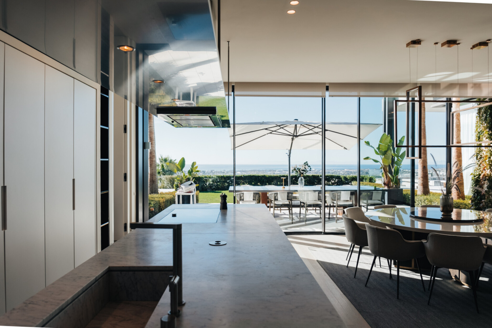 Vanaf het moment dat je de woning betreedt, word je begroet door een spectaculair uitzicht dat tot voorbij de horizon reikt. De buitenkeuken en eetgedeeltes verhogen deze ervaring nog verder, waardoor het een ideale ruimte is om bijeenkomsten te organiseren en te genieten van het mediterrane klimaat met distinctie en elegantie.