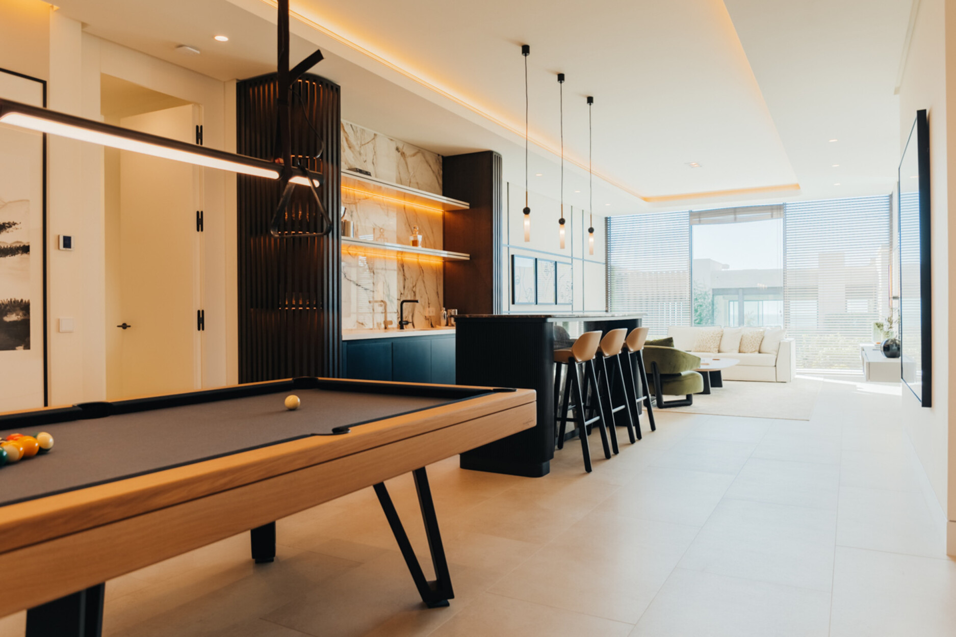 Dit eigentijds ontworpen pand integreert ruime ruimtes die de stijl van Pedro Peña aan de binnenkant en Tobal Arquitectos aan de buitenkant combineren. De villa heeft zes slaapkamers, waaronder een apart appartement voor gasten en personeel. De master suite, met op maat gemaakte kleedkamer en luxe ensuite badkamer, biedt een adembenemend uitzicht op zee en creëert een sereen toevluchtsoord. Voor maximaal genot en comfort is er een privésauna, fitnessruimte en een entertainmentruimte met pooltafel, stijlvolle bar en tv-lounge. Deze buitengewone villa herdefinieert moderne luxe in Marbella en is het ultieme droomhuis.