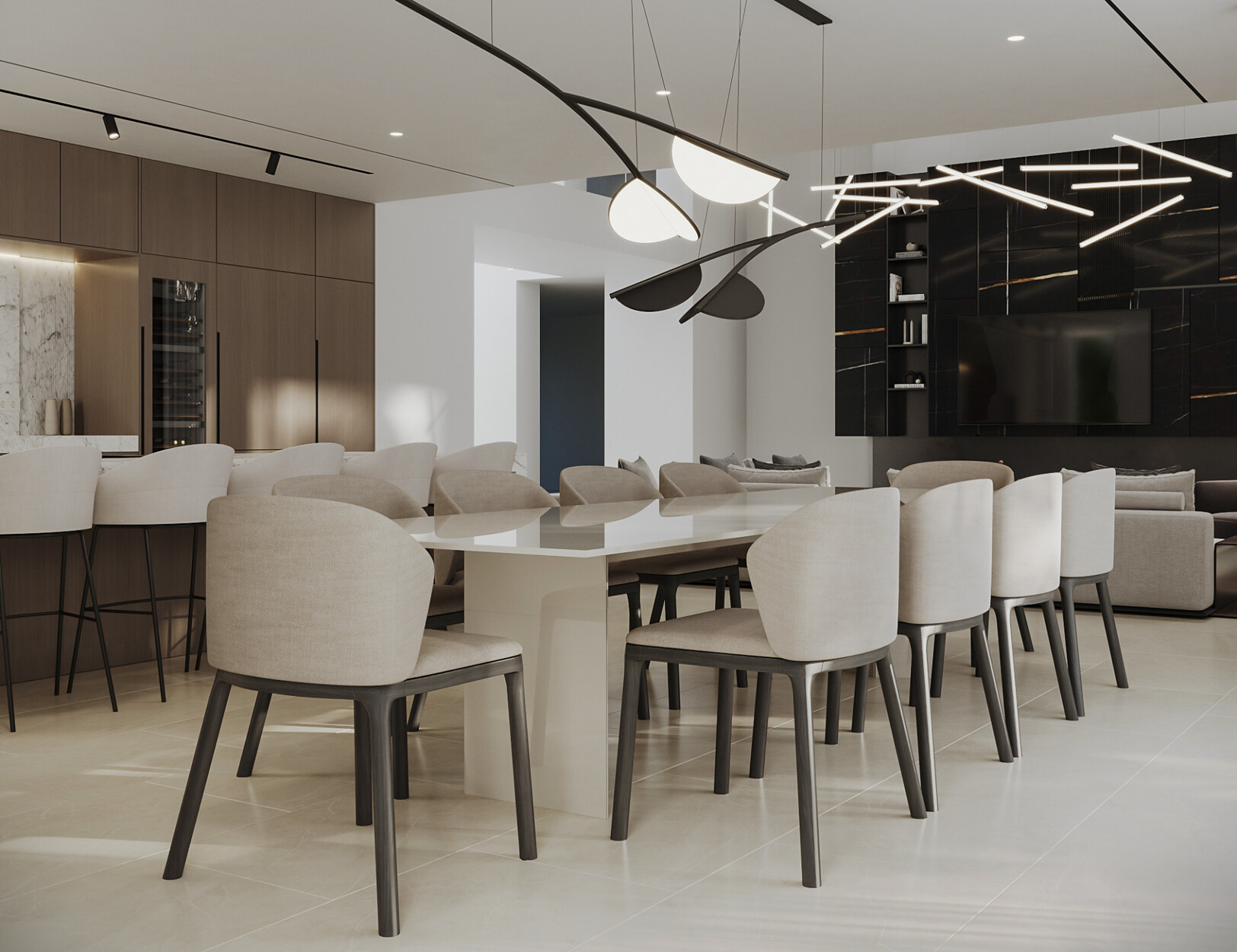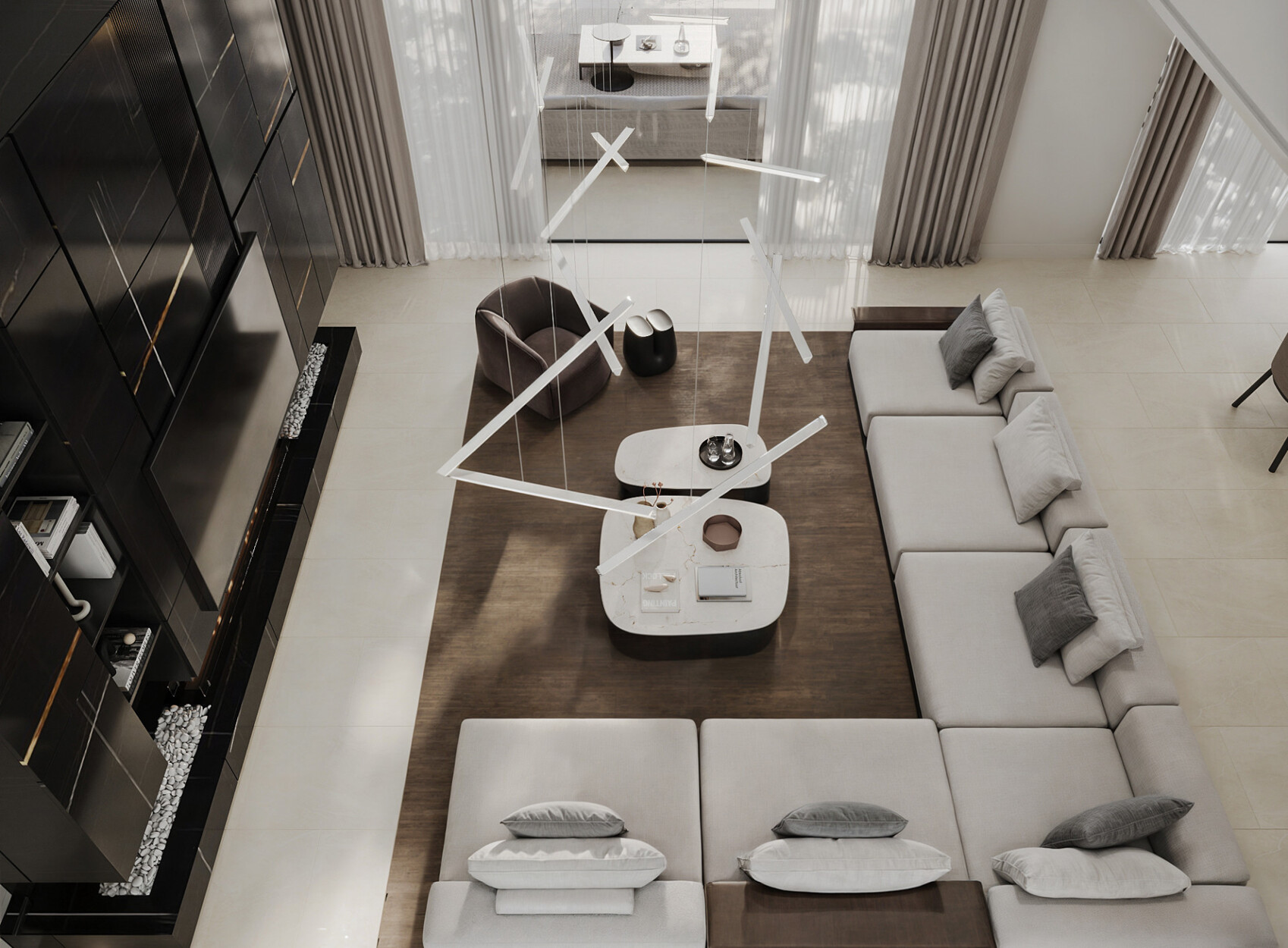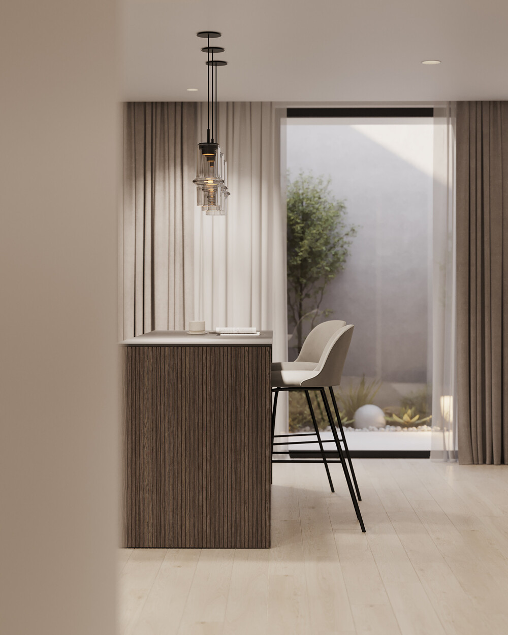Het interieur van de villa is ontworpen om het licht en de ruimte te maximaliseren, met hoge plafonds en open ruimtes waardoor elke kamer wordt overspoeld met natuurlijk licht. Luxe afwerkingen, samen met een lay-out die comfort en functionaliteit vooropstelt, maken van elke hoek een perfecte plek om te ontspannen en te genieten. De open woonkamer sluit naadloos aan op de moderne keuken, voorzien van hoogwaardige apparatuur.
