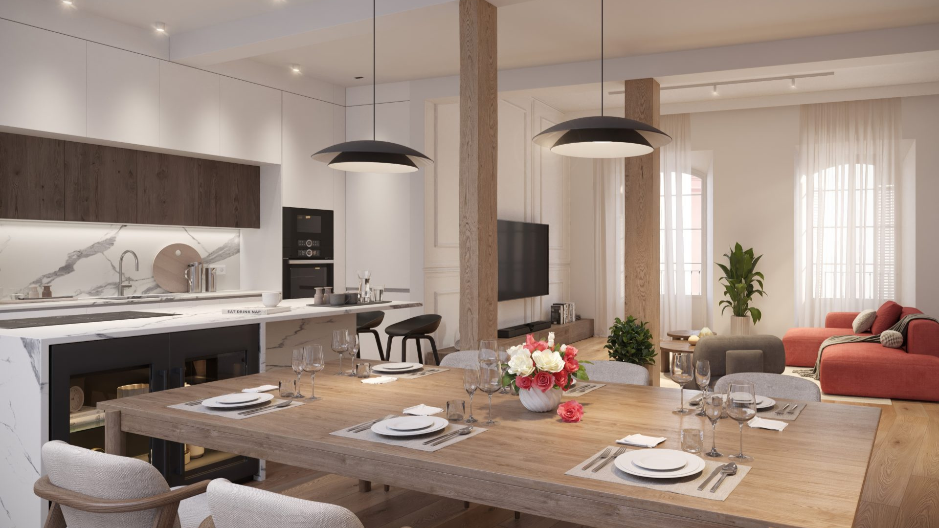 De gepubliceerde afbeeldingen zijn representatieve renders die de kwaliteit van de afwerkingen tonen en komen niet volledig overeen met de aangeboden woning.