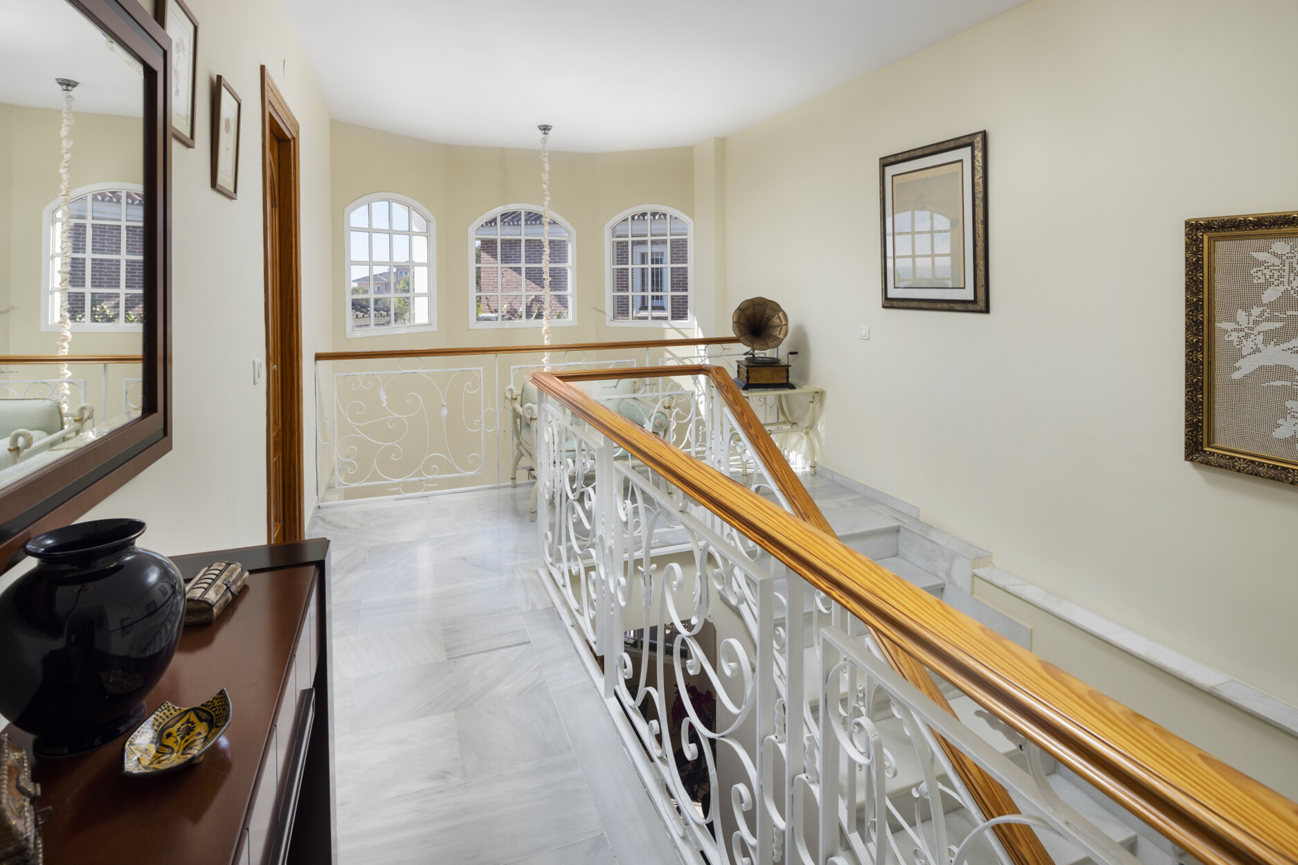 Deze charmante villa, met zijn kleurrijke gevel en mediterrane neoklassieke stijl, betovert met tijdloze elegantie. De ruime terrassen met klassieke balustrades, perfect voor dineren in de buitenlucht, worden aangevuld met een gezellige open haard en een barbecuehoek. Met lichte, open ruimtes, een garage voor meerdere auto's en gemakkelijke toegang tot de snelweg, combineert het moeiteloos elegantie en functionaliteit in elk detail.