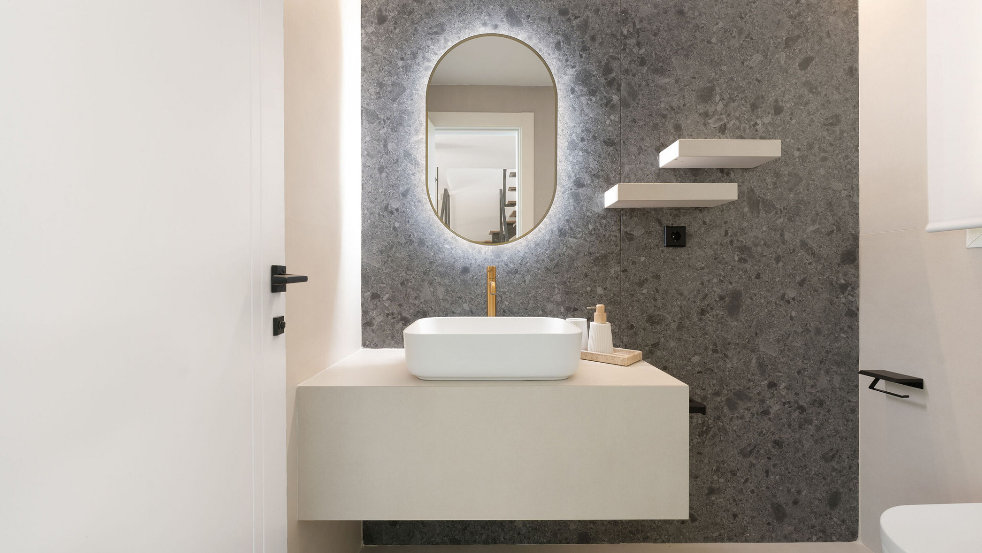 Het interieur valt op door het moderne en functionele ontwerp. Met een open lay-out zijn de woonkamer, keuken en eetkamer naadloos geïntegreerd, waardoor een lichte en comfortabele omgeving ontstaat, ideaal voor entertainment. De keuken, uitgerust met de beste apparatuur van Smeg, biedt een ideale ruimte voor zowel het dagelijks leven als voor formele diners. Boven bieden drie ruime slaapkamers met en-suite badkamers, elk met toegang tot kleine privéterrassen, een intiem toevluchtsoord met ononderbroken uitzicht op het landschap.