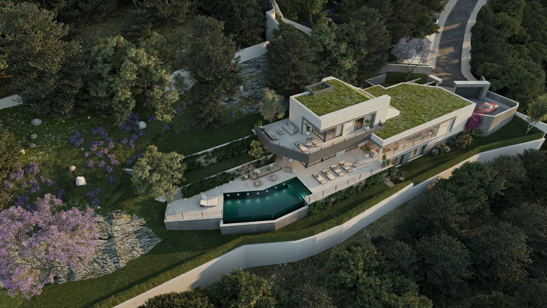 De buitenruimtes zijn een oase van rust, met een zoutwater-infinity pool, op het zuiden gerichte terrassen en prachtig aangelegde tuinen. Elke buitenhoek is ontworpen om te genieten van het mediterrane klimaat, met spectaculaire uitzichten en absolute privacy in een ongeëvenaarde natuurlijke omgeving.