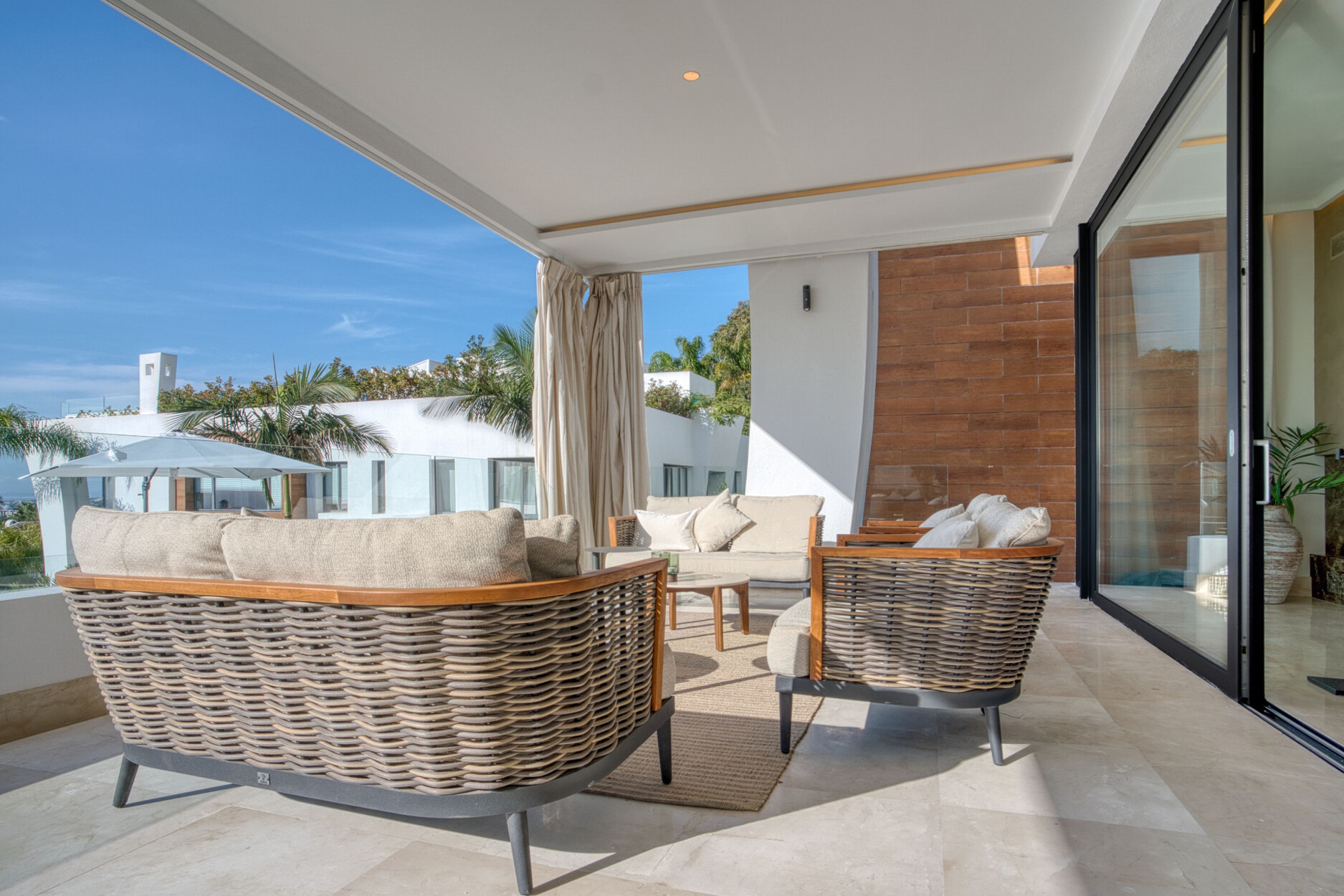 De privéterrassen van deze duplex zijn ideaal om te genieten van het mooie weer in Marbella. Het uitzicht op zee biedt de perfecte ruimte om al fresco te dineren, te zonnebaden of gewoon te ontspannen. Het exterieurontwerp van het pand is ontworpen om maximale privacy te garanderen en tegelijkertijd te profiteren van het uitzicht en de natuurlijke omgeving, allemaal binnen een veilige omheinde gemeenschap waar alleen een selecte groep van kan genieten.