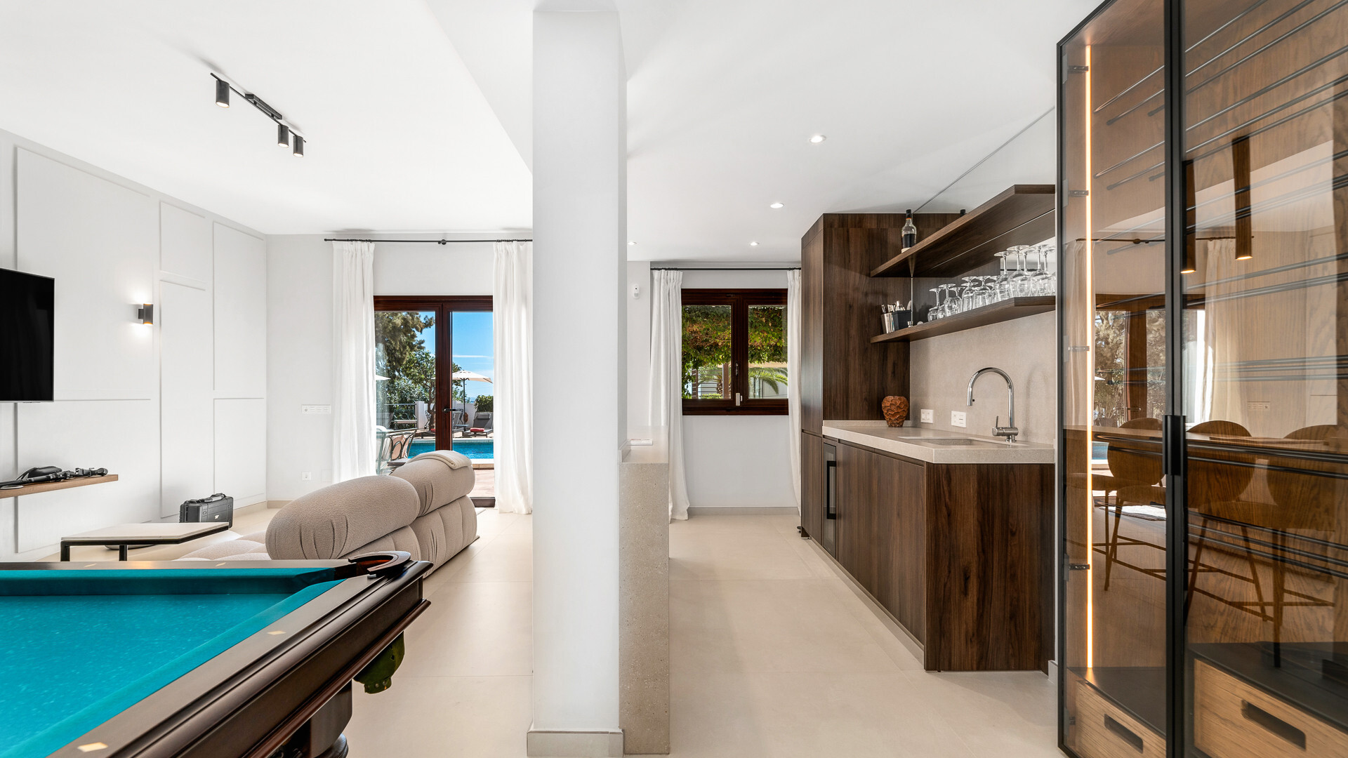 Het interieur is ruim opgezet, met hoge plafonds en ramen van vloer tot plafond die natuurlijk licht binnenlaten. De moderne open keuken van Porcelanosa heeft een ontbijthoek en een eetkamer met zitplaatsen voor meer dan twaalf personen. De recreatielounge biedt eersteklas entertainment met een pooltafel, bar, televisie en feestkeuken, ideaal om te socializen. Daarnaast beschikt het pand over vloerverwarming in de badkamers, airconditioning, twee bio-ethanol open haarden en ultrasnelle 1Gbps connectiviteit, wat zorgt voor een moderne en technologische ervaring. Wellnessfaciliteiten zoals een fitnessruimte, sauna en jacuzzi garanderen maximaal comfort. Elke hoek van dit huis is ontworpen om een leven van luxe, welzijn en exclusiviteit te bieden, waardoor het een uniek juweeltje is in het hart van Marbella.