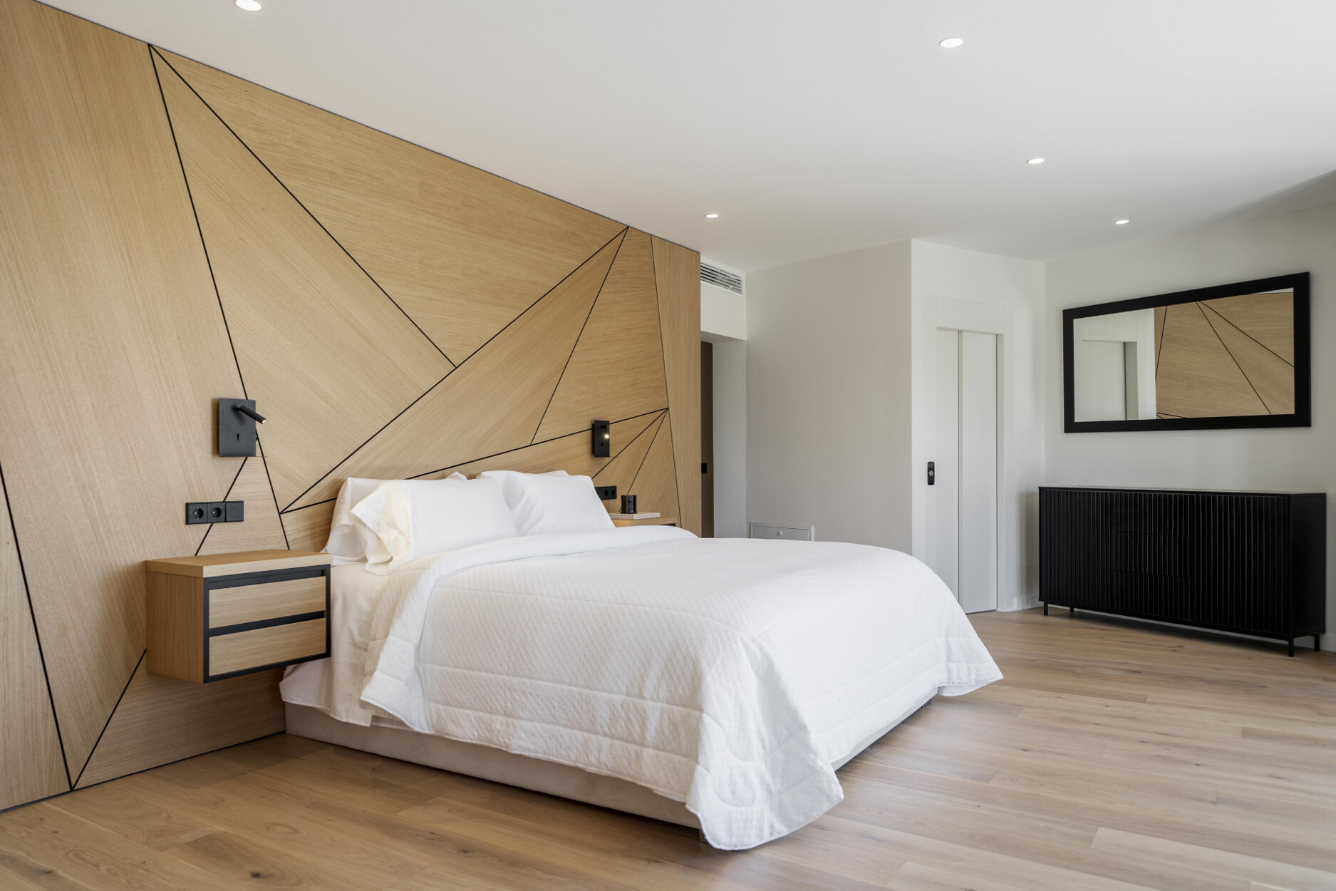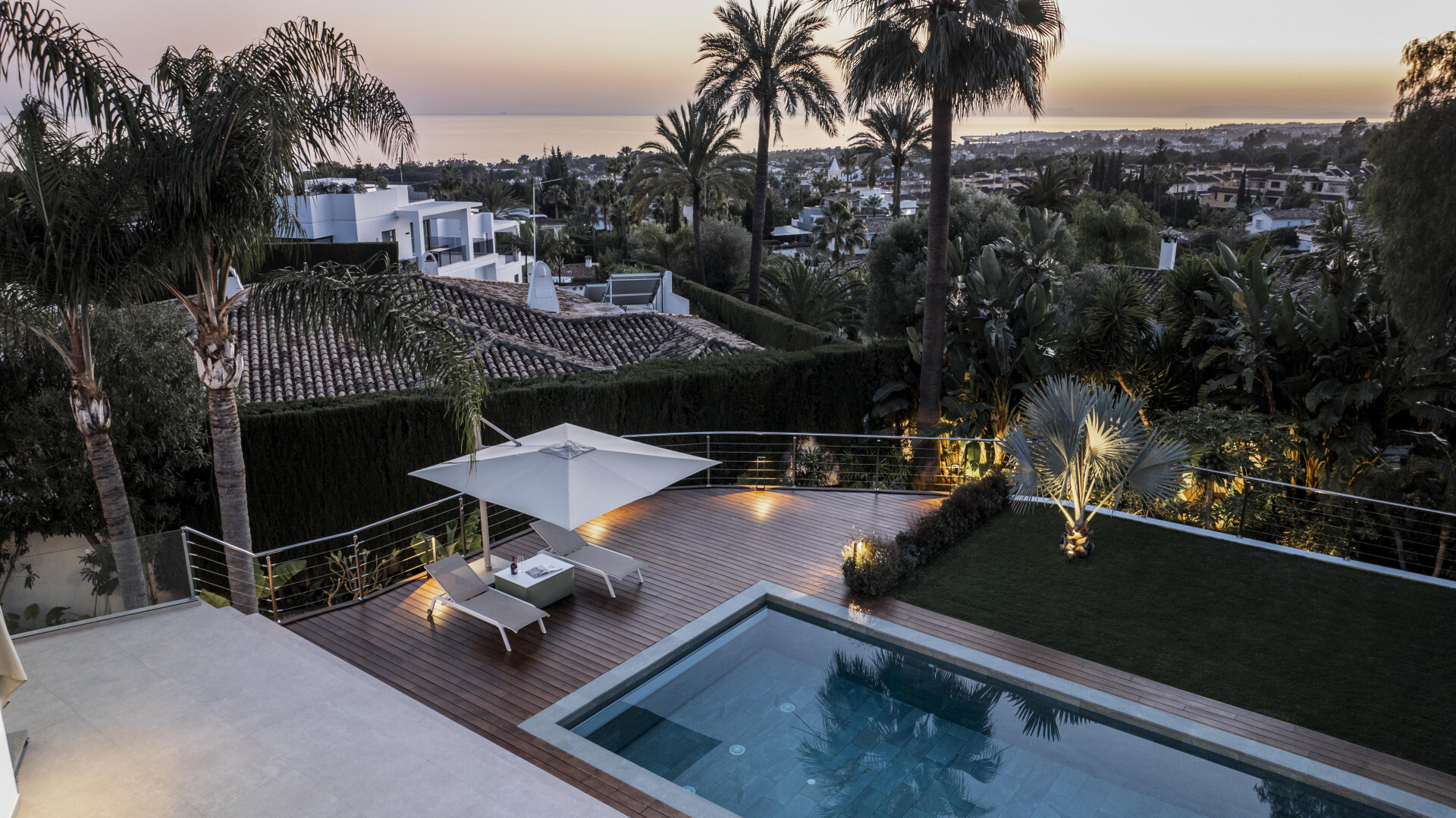 Het interieur van het huis is ontworpen om comfort en licht te maximaliseren. Op de benedenverdieping zijn er drie slaapkamers, waarvan een en suite met een badkamer, kleedkamer en uitzicht op de tuin en de zee. De bovenverdieping, exclusief gewijd aan de master suite, biedt een onvergelijkbaar ruimtelijk gevoel, met twee aparte badkamers en een grote kleedkamer. De belangrijkste woon- en eetkamer is licht en uitnodigend en sluit aan op de moderne keuken, ideaal voor entertainment. Vanuit de villa heb je het meest majestueuze panoramische uitzicht over de beroemde Golden Mile tot aan Gibraltar, waardoor elke dag een unieke visuele ervaring wordt.