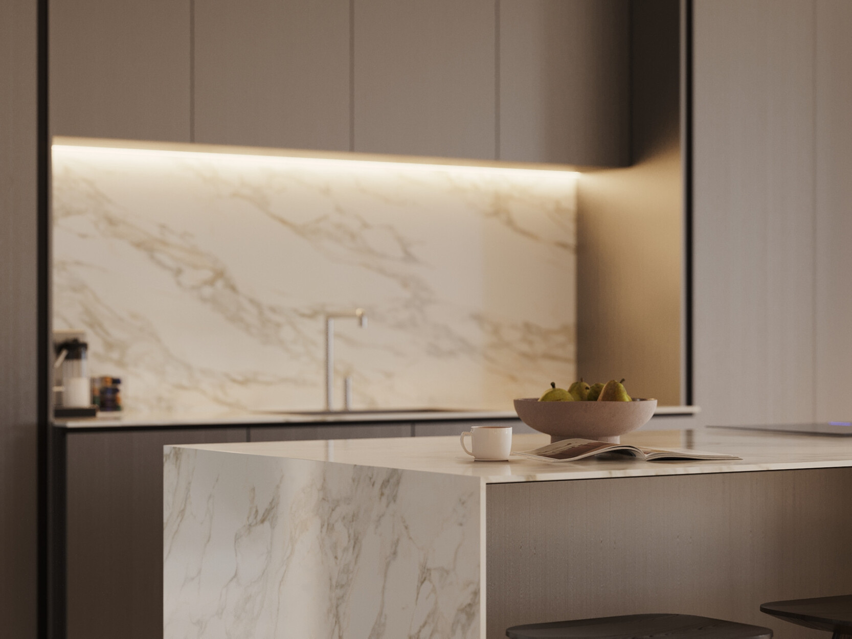 Het interieur is ontworpen om een superieur niveau van comfort en verfijning te bieden in elk detail. De open indeling verbindt naadloos de woonkamer, de moderne Italiaanse Poliform keuken met Gaggenau en Bora apparatuur, en de ruime terrassen, waardoor een harmonieuze leefruimte ontstaat. De villa heeft zes slaapkamers, elk met topkwaliteit afwerking. De master suite, een luxe toevluchtsoord, wordt gekenmerkt door een prachtig uitzicht op zee en een en-suite badkamer die is ontworpen volgens de hoogste normen van comfort en stijl.