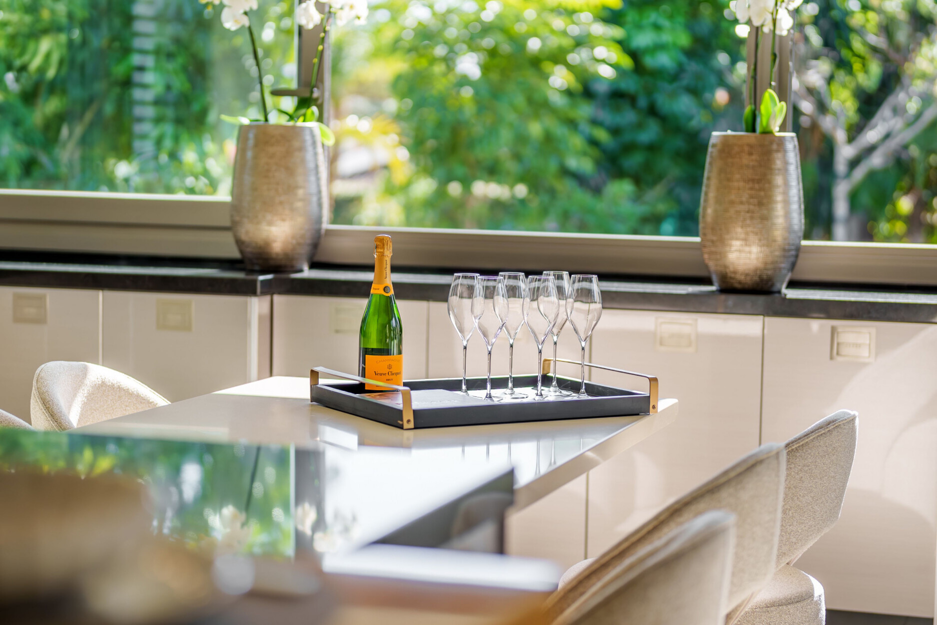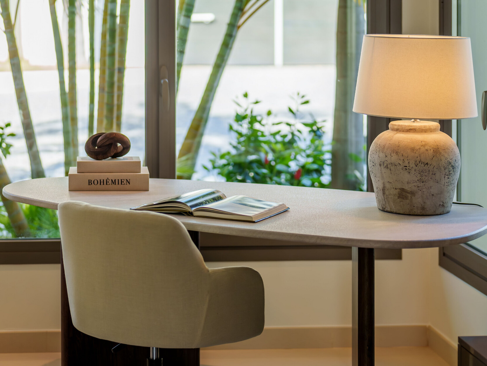 Binnen biedt de villa een lay-out van ruime, lichte en goed verbonden ruimtes. De woonkamer geeft direct toegang tot het terras en de tuin, terwijl de open Danespan keuken wordt geaccentueerd door het grote centrale eiland en de eethoeken, waardoor de perfecte omgeving ontstaat voor zowel het dagelijks leven als voor entertainment. Onder de opvallende kenmerken zijn twee ruime woonkamers, een bibliotheek, een kantoor aan huis en een garage met een capaciteit voor vier auto's. Daarnaast heeft het een Lutron verlichtingssysteem, Technal beveiligingsramen en een watertank, wat zorgt voor maximaal comfort en veiligheid. Elk detail is zorgvuldig ontworpen om een uitzonderlijke woonervaring te bieden.