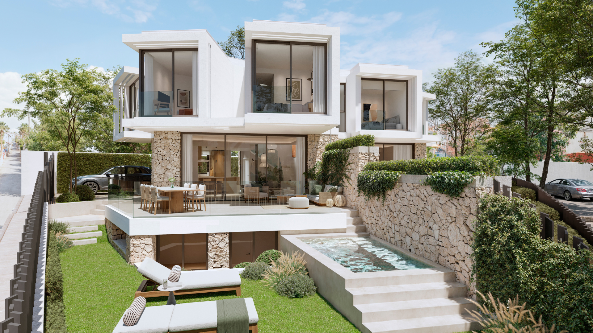 Elegantie, licht en exclusiviteit in elk detail. Deze drie verdiepingen tellende designwoning beschikt over open ruimtes, hoogwaardige materialen en een onberispelijke indeling. De hoogwaardige keuken en open woonkamer sluiten naadloos aan op de buitenruimte, wat zorgt voor de perfecte setting voor ontspanning en gezelligheid. Met een multifunctionele ruimte, privézwembad en drie en-suite slaapkamers, biedt deze woning de perfecte balans tussen luxe en welzijn.