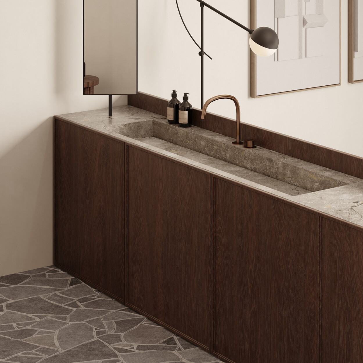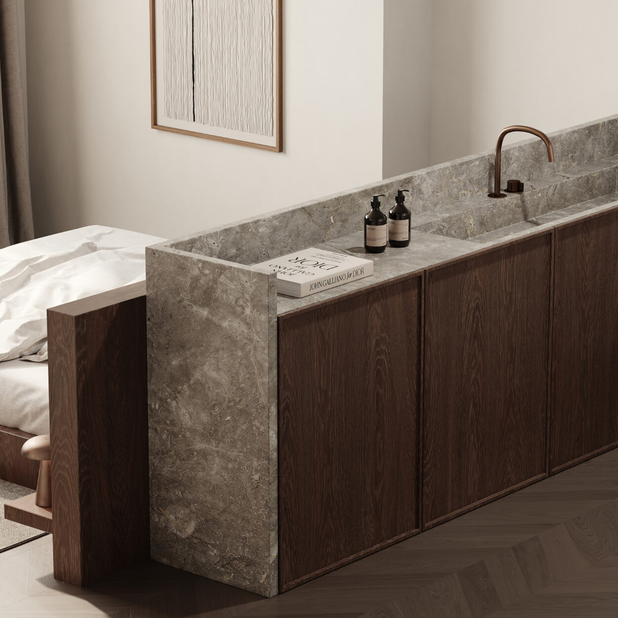 Dit penthouse is volledig gerenoveerd met geselecteerde materialen om een elegante en functionele woning te bieden. Het ontwerp, dat mid-century elementen mengt met moderne accenten, onderscheidt zich door de kwaliteit van de afwerking: fijn hout zoals donker eiken, klassieke parketvloeren en zorgvuldig gekozen tegels van klein formaat. Dankzij de indeling op twee verdiepingen kun je genieten van zowel ontspanning als vermaak in een unieke omgeving.