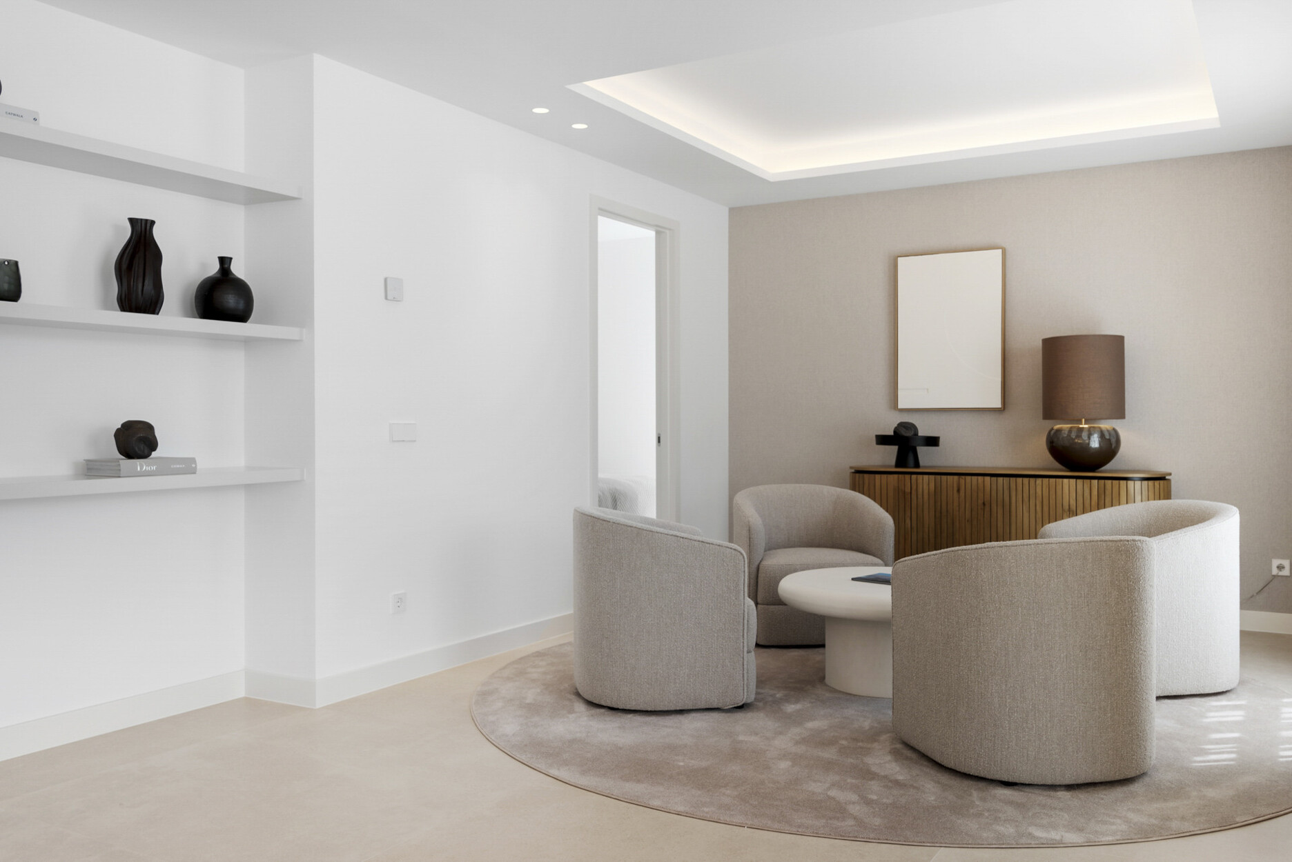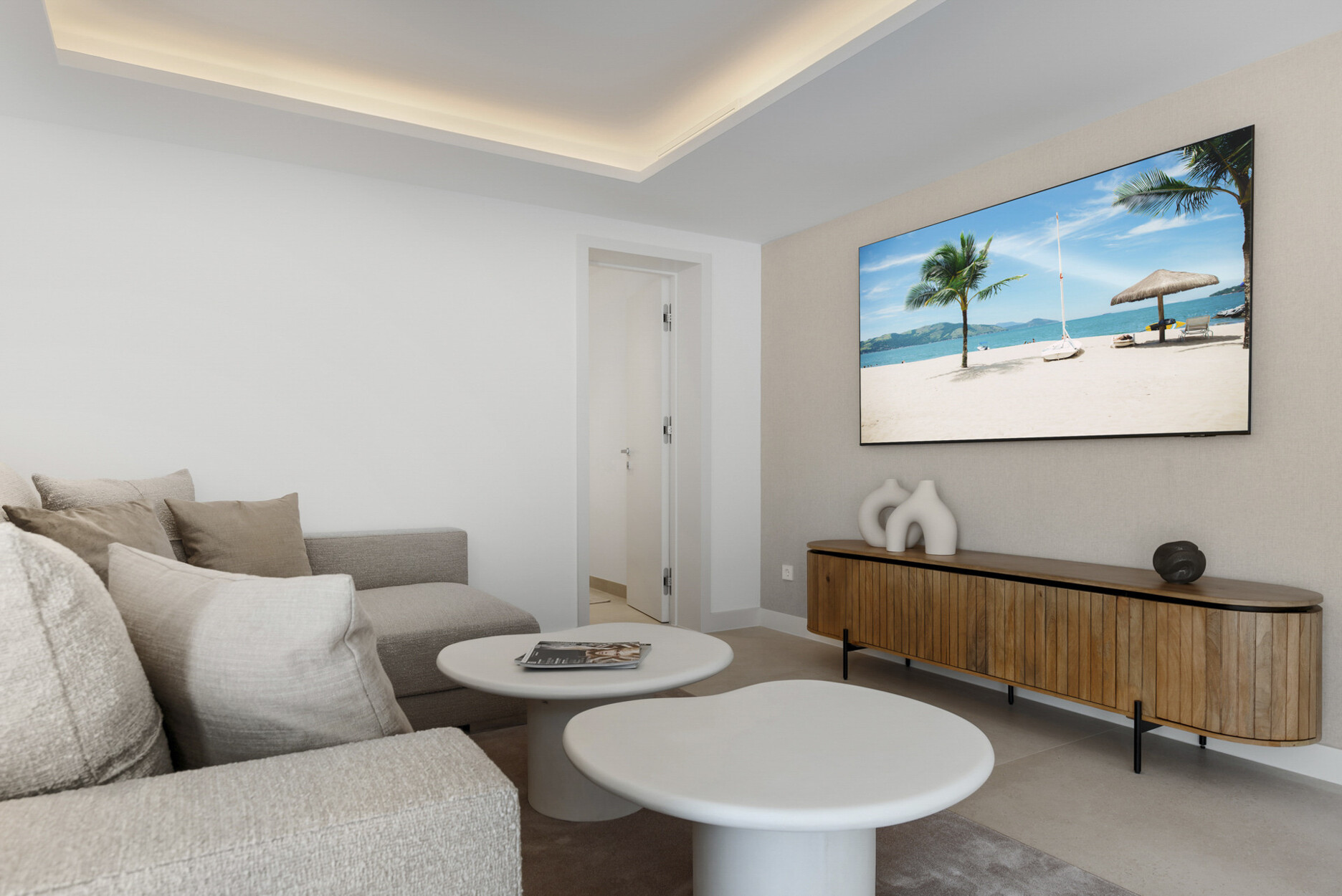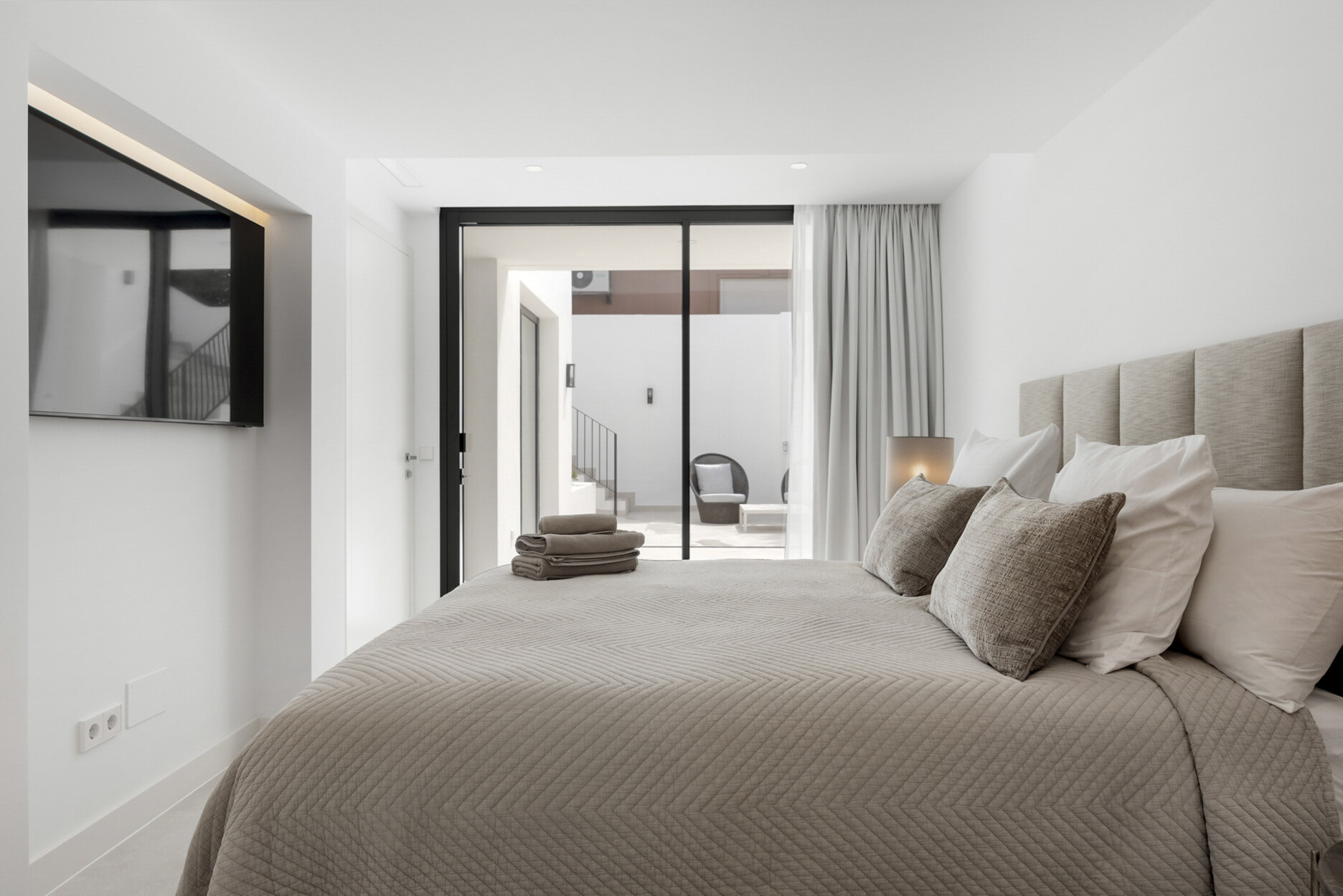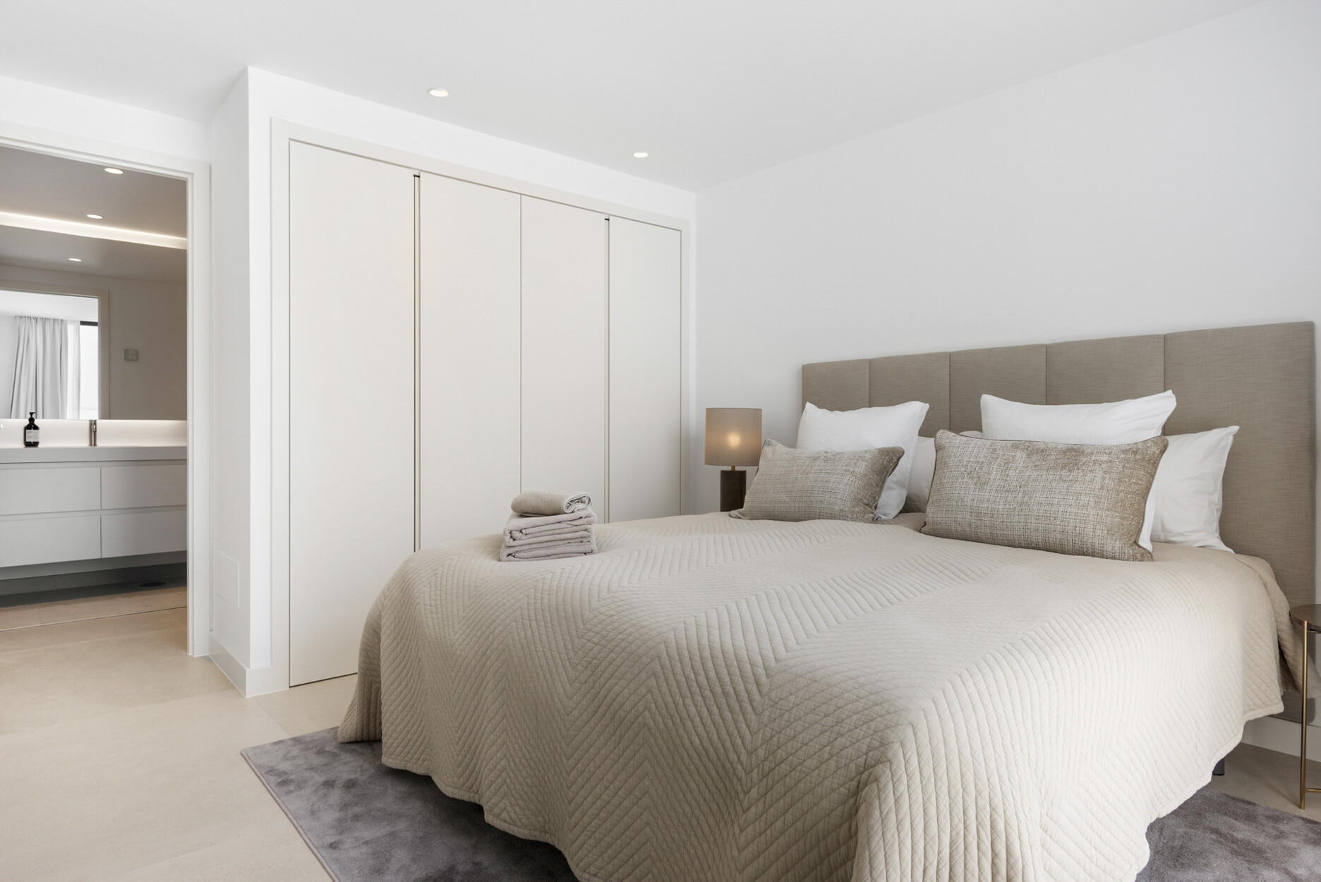 De villa heeft vijf slaapkamers, elk met een eigen badkamer, waardoor privacy en comfort voor het hele gezin gegarandeerd is. De master suite, gelegen op de bovenste verdieping, is een echt juweeltje met een privéterras dat panoramisch uitzicht biedt op de Middellandse Zee. Er is ook een loungeruimte, perfect om te ontspannen terwijl je geniet van het landschap. Zonder twijfel het perfecte uitgangspunt voor een unieke Costa del Sol ervaring.