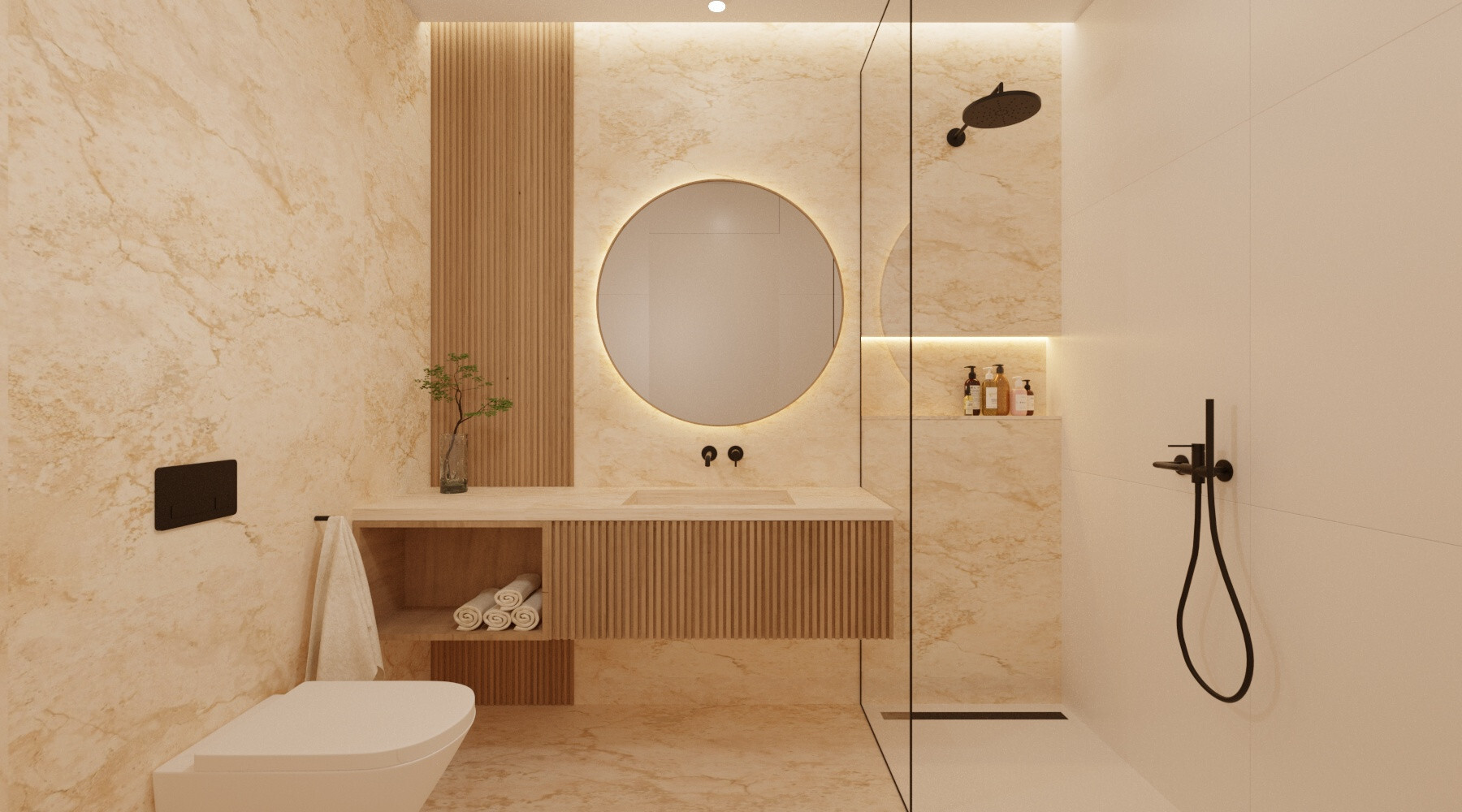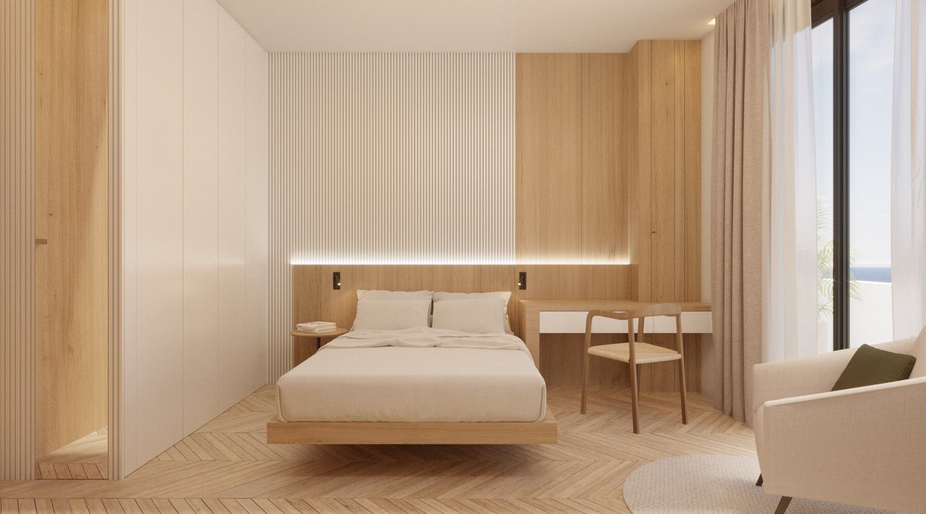 Het appartement is ontworpen volgens de hoogste kwaliteitsnormen, waarbij elegantie en functionaliteit worden gecombineerd. De open en lichte ruimtes integreren naadloos de ruime open woonruimte, die bestaat uit een volledig uitgeruste designkeuken, de master bedroom met een en-suite badkamer en een inloopkast. Het neutrale kleurenpalet en de premium afwerkingen creëren een warme en verfijnde sfeer, perfect om te genieten van de exclusieve mediterrane levensstijl.