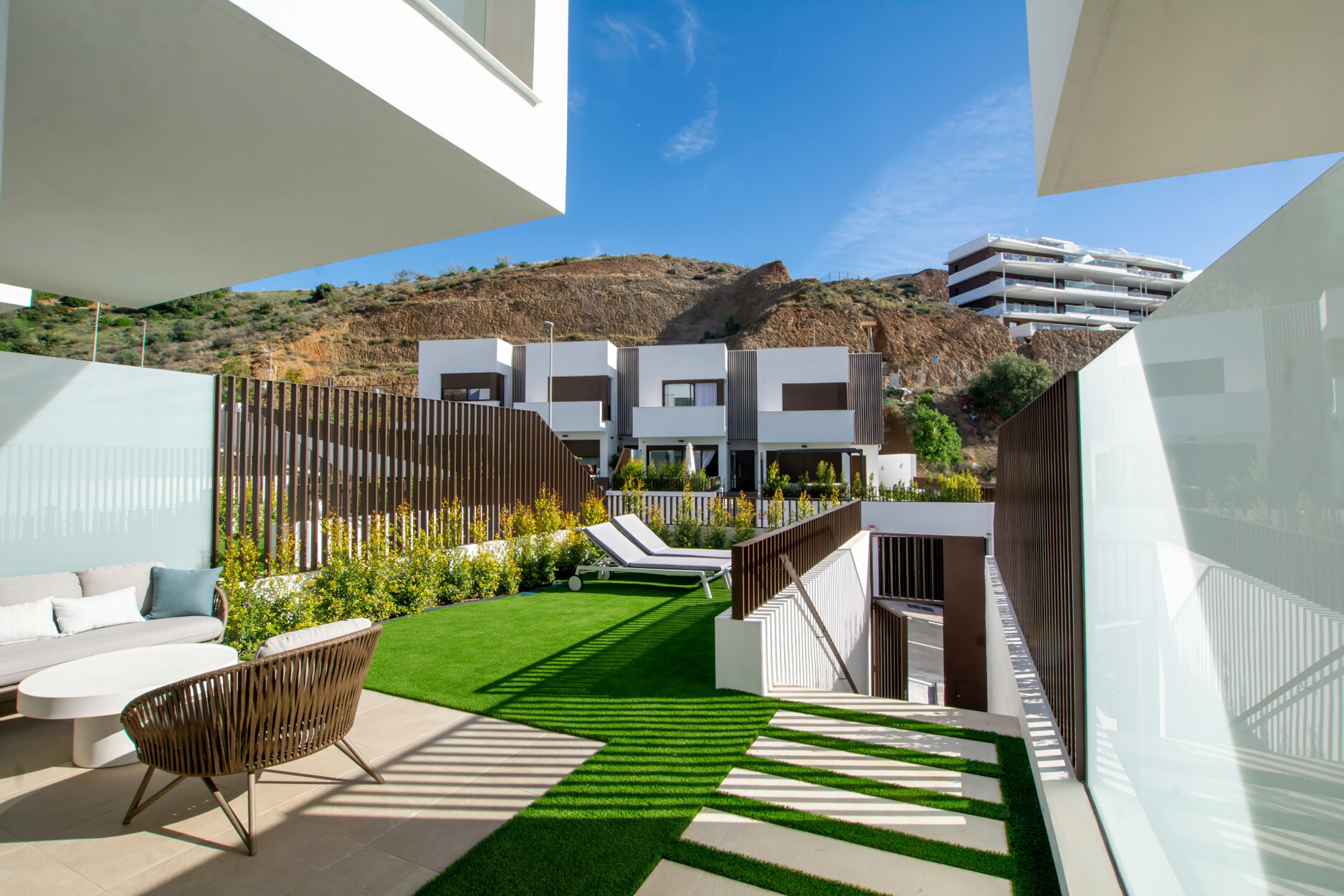 We presenteren u het ruimste herenhuis van deze exclusieve ontwikkeling van slechts 9 woningen. Met de grootste patio van het project en een charmante privétuin, biedt dit huis een oase van ruimte, licht en privacy – met daarnaast een spectaculair uitzicht op zee. Slechts vijf minuten van het strand, maakt de rustige ligging dit tot een werkelijk bevoorrechte plek om te wonen.