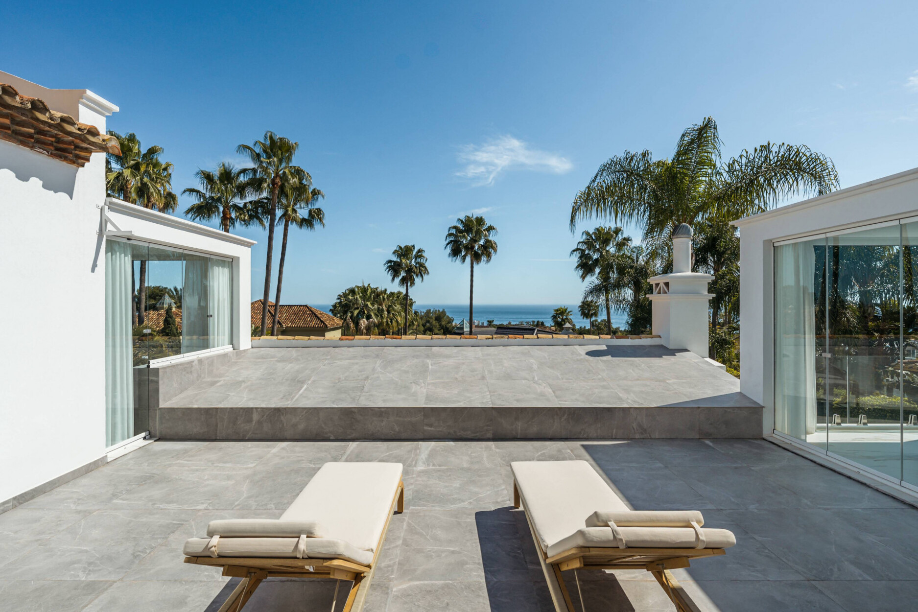 Het interieur van de villa is ontworpen om in elke hoek een ervaring van luxe en comfort te bieden. Het decor, dat mediterrane stijl combineert met moderne accenten, creëert een warme en uitnodigende sfeer. Hoge plafonds met wit geschilderde houten balken versterken de elegantie van de ruimtes, terwijl marmeren vloeren en hoogwaardige afwerkingen verfijning toevoegen. De open keuken is uitgerust met ultramoderne apparatuur en heeft een centraal eiland dat dienst doet als kook- en eetruimte, ideaal voor informele of familiebijeenkomsten.