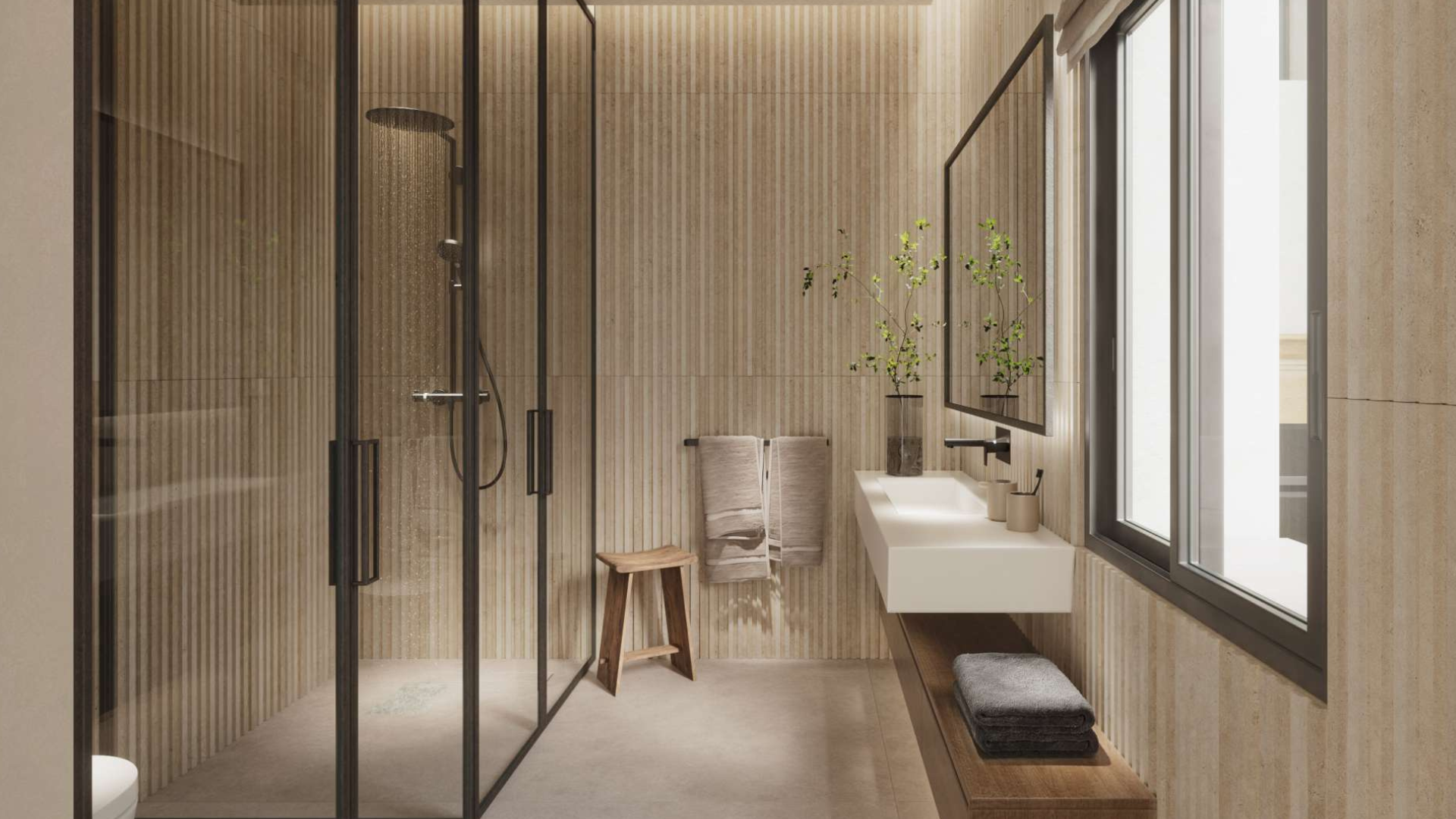 De woning is ontworpen met oog voor ruimte, natuurlijk licht en een continu gevoel van welzijn. Het interieur straalt moderne elegantie en praktische functionaliteit uit. Alleen eersteklas materialen zijn gebruikt, met topmerken zoals Porcelanosa en Siemens-apparatuur, die zorgen voor duurzame en esthetisch verfijnde afwerkingen. Het geïntegreerde domoticasysteem maakt het eenvoudig om verlichting, klimaat en beveiliging te beheren, wat zorgt voor comfort en efficiëntie. Het interieurontwerp combineert neutrale tinten, natuurlijke texturen en strakke lijnen voor een verfijnde, warme en uitnodigende sfeer – ideaal voor wie op zoek is naar een exclusieve woning die aan alle verwachtingen voldoet.