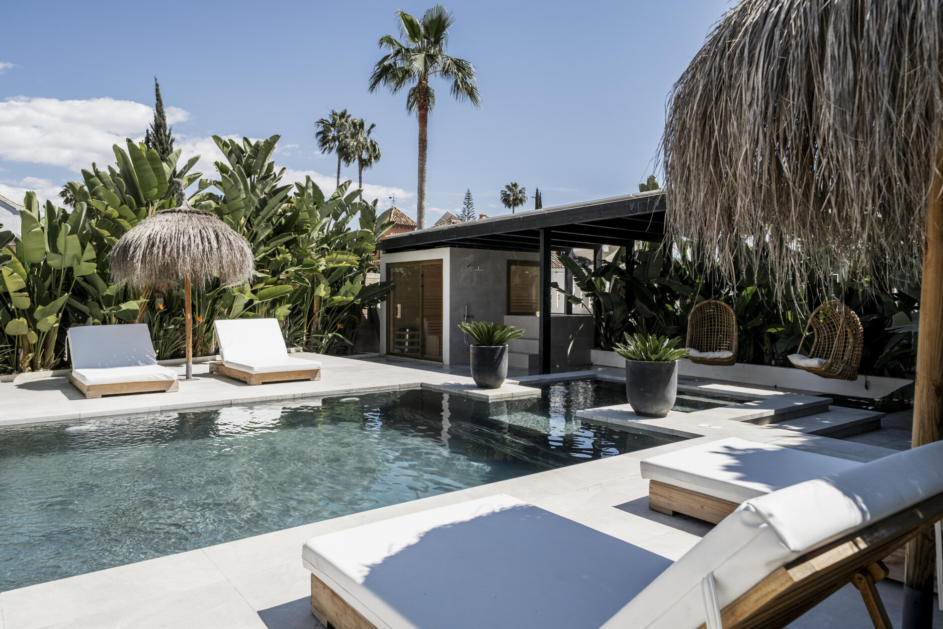 Dit is een elegante gezinswoning, gelegen in het hart van Nueva Andalucía. De woning combineert traditionele Andalusische charme met een eigentijds, minimalistisch interieur, wat resulteert in een warme, verfijnde en functionele sfeer. Dankzij het ontwerp met drie verdiepingen en royale binnen- en buitenruimtes is deze villa een waar toevluchtsoord voor wie op zoek is naar comfort, privacy en een ontspannen levensstijl aan de Costa del Sol.