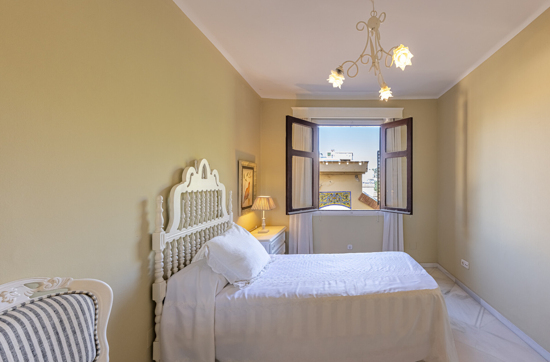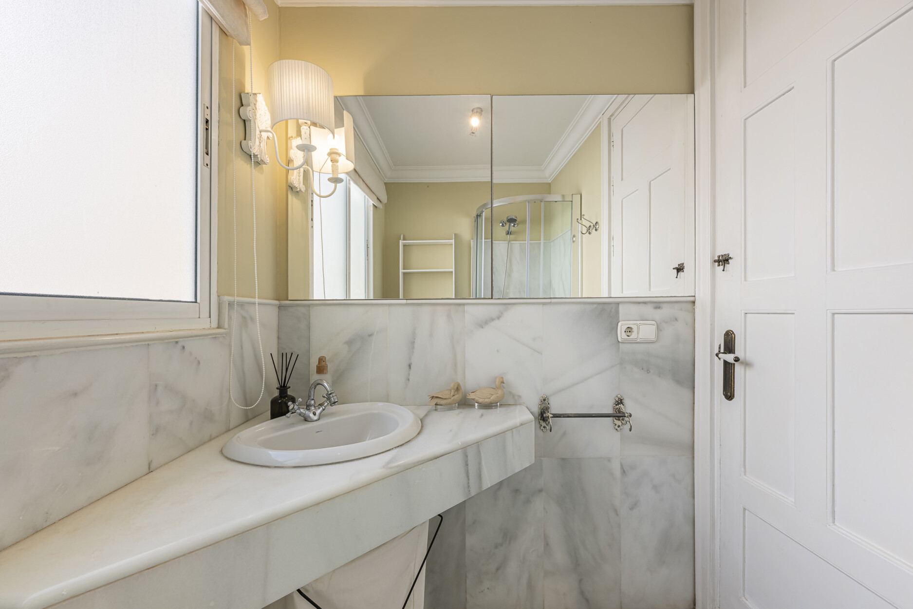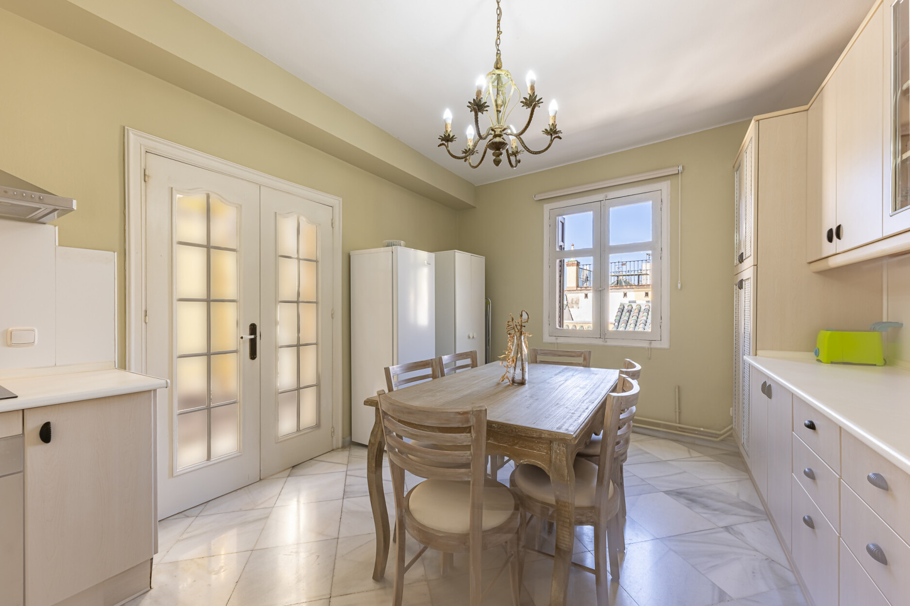 Het appartement heeft een evenwichtige en veelzijdige indeling. Bij binnenkomst leidt een hal naar de aparte keuken en de ruime woon-eetkamer, die profiteert van aangenaam natuurlijk licht dat gefilterd wordt via de binnenplaats. De twee hoofdslaapkamers zijn ruim opgezet en voorzien van ingebouwde kasten, terwijl de complete badkamer en het gastentoilet extra functionaliteit toevoegen. Alle kamers zijn naar binnen gericht, wat zorgt voor absolute rust — een stille luxe in een van de meest levendige wijken van Málaga.