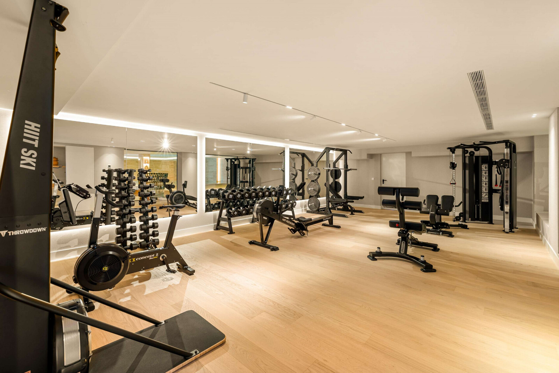 Het interieur van de villa valt op door zijn lichtinval, neutrale tinten en het gebruik van natuurlijke materialen zoals hout, wat warmte en karakter toevoegt. De open indeling verbindt de woon-, eet- en keukenruimtes, waardoor een gezellige en functionele sfeer ontstaat. De kelder, gewijd aan entertainment, omvat een verwarmd zwembad, sauna, Turks bad, fitnessruimte, bioscoop en speelkamer, waardoor deze villa een complete toevluchtsoord is voor ontspanning en welzijn.